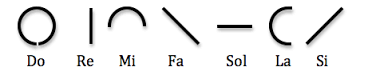 솔레솔의 각 음표는 기호로 표현된다. 예를 들어 "도"는 원으로 표현된다.
