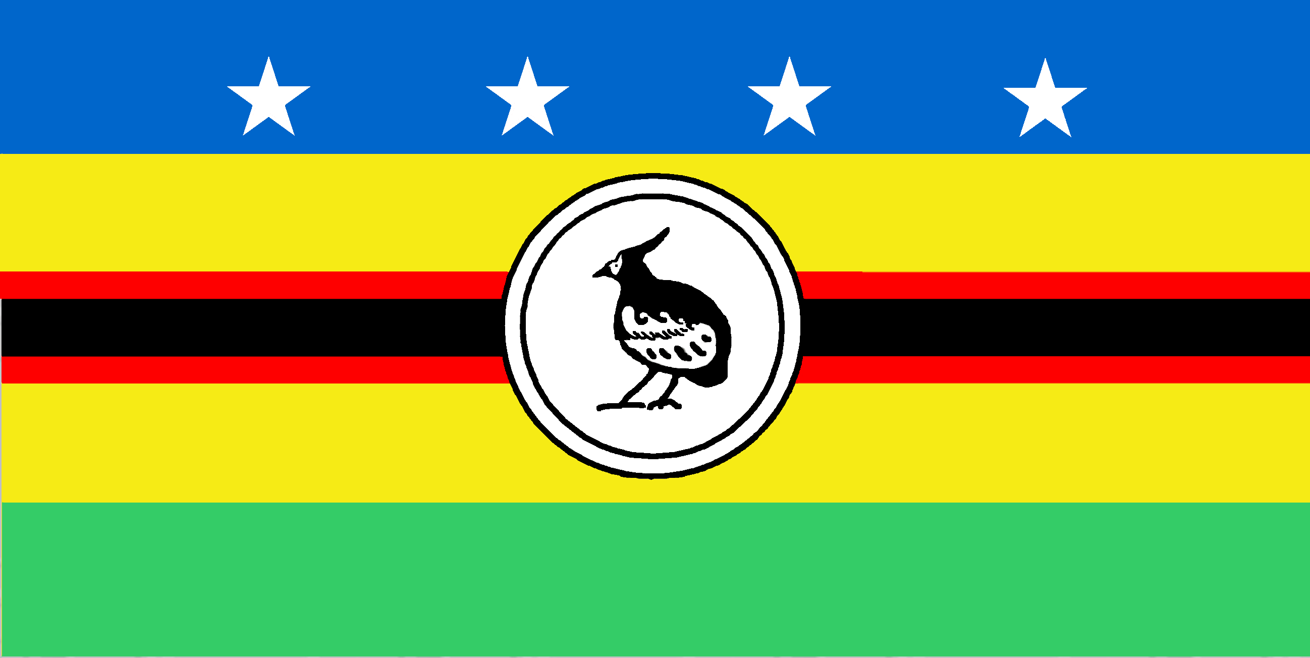 1956년–1966년 | 사분할된 방패가 그려진 블루 앤사인 – 사자, 독수리, 거북이, 군함조, 그리고 이 지역의 무기를 흰색 원반 위에 묘사. | |