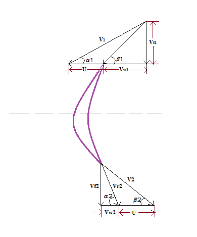 이 방정식은 속도 다이어그램을 그릴 때 자주 사용된다. 전향 및 후향 블레이드의 속도 다이어그램은 이 법칙을 사용하여 그려진다. 각도 α는 축 방향에 대한 절대 속도가 이루는 각도이고, 각도 β는 축 방향에 대한 블레이드가 이루는 각도이다.