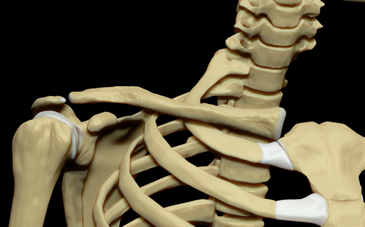 견갑골, 견봉, 상완골이 연결되어 어깨를 구성하며, 쇄골은 몸통보다 팔 쪽에 더 가깝게 분류된다. 쇄골은 위에서 보면 'S'자 형태이고, 정면이나 아래에서 보면 살짝 휘어진 1자에 가깝다. 골화와 골연화 과정이 가장 빠른 뼈로, 골절이 쉽게 일어나지만 회복도 빠른 편이다.