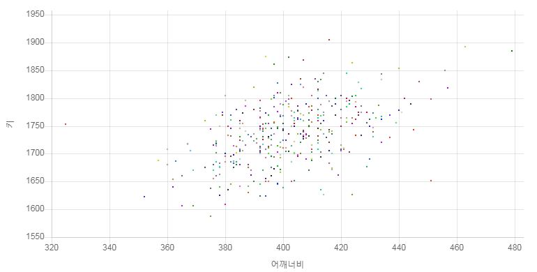 어깨 너비(쇄골 길이)는 키와의 분포도에서 넓게 분포된 경향을 보였으나, 앉은 키와 키의 그래프는 분포도가 좁게 분포되어 있다. 이는 키와의 상관관계를 따질 때 어깨 너비는 표준편차가 적고, 앉은 키는 표준편차가 높다는 것을 의미한다.