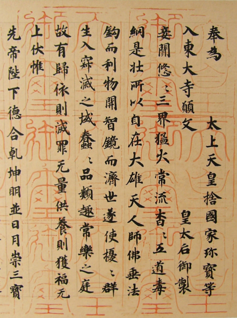 756년 나라 시대, 고묘 황후는 남편 쇼무 천황의 7주기를 맞아 유품 약 650점과 약 60종의 약품 등을 도다이지의 비로자나불(대불)에게 봉헌했다. 이후에도 여러 차례 관련 물품을 봉헌했으며, 이들 헌납품 목록은 현존하는 5종의 '헌납장' 문서에 기록되어 쇼소인에 보관되었다.