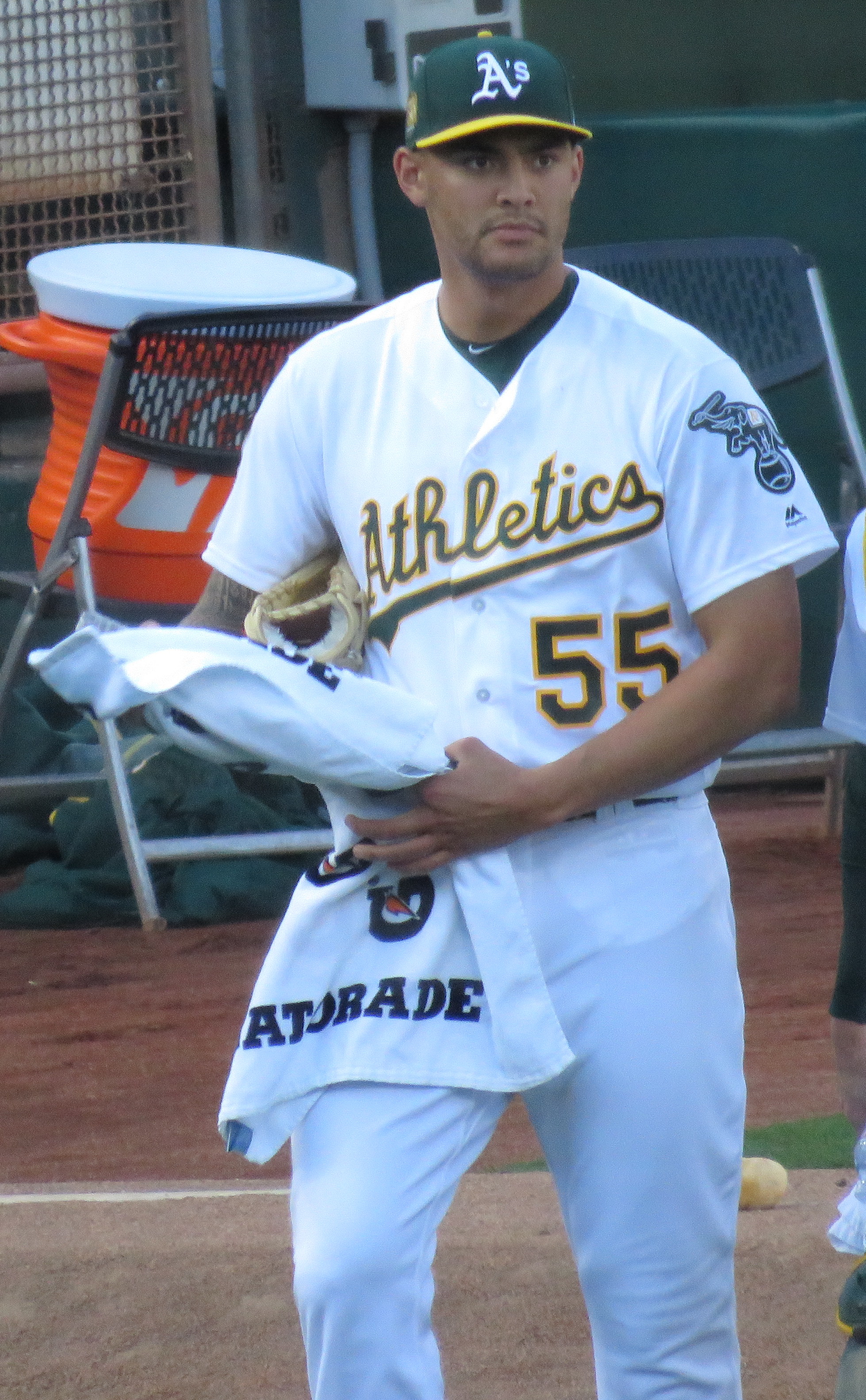 2015년 7월 28일 캔자스시티 로열스에서 오클랜드 애슬레틱스로 트레이드되었다.[25][71][72] 2016년 4월 29일 휴스턴 애스트로스를 상대로 메이저 리그 데뷔전을 치렀고,[29][30][75] 2018년 4월 21일에는 보스턴 레드삭스를 상대로 노히트 노런을 기록하는 등[37][38][78] 오클랜드 시절 주목할 만한 활약을 펼쳤다. 2019년에는 어깨 수술 후 성공적으로 복귀하기도 했다.[45][33]