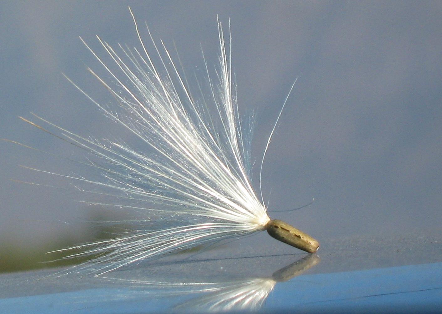 국화과 식물의 수과(하위 수과)에는 꽃받침이 변형된 털 모양의 관모가 발달해 있어 바람에 의한 산포(풍산포)에 적합하다.[11][25][26] 엉겅퀴, 민들레, 개쑥갓, 돼지풀, 말똥비름, 부들, 미국제비꽃, 갯국화 등이 그 예이다. 민들레의 경우, 꽃받침 조직이 변형된 관모가 씨앗의 생물학적 산포에 기능한다.