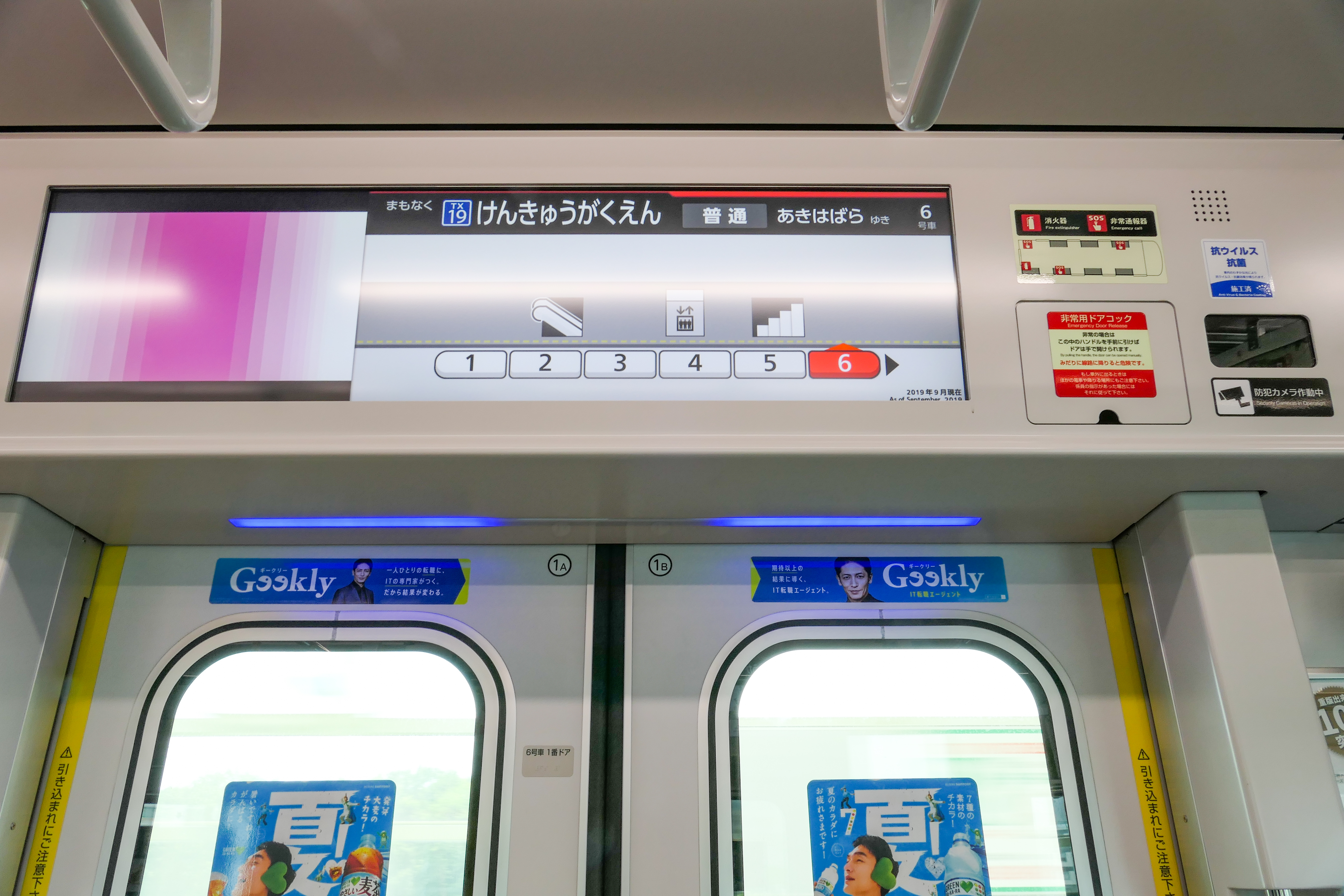 TX-3000계 전동차는 각 도어 상부에 42인치 하프 액정식 차내 안내 표시기(PIS 장치)를 설치하여, 광고 영상 전달과 일본어, 영어, 중국어, 한국어 4개 국어로 여객 안내를 제공한다.[5] 표시기 우측에는 방범 카메라가 설치되어 있다.[5] 도어 개폐 시에는 도어 차임과 함께 도어 개폐 표시등이 작동하며, 역 접근 시 청색으로 도어 개방 방향을 예고 점등한다.운전대는 왼손 조작식 원 핸들 마스콘과 글래스 콕핏 구조를 채택했다.[5] 속도계등의 계기류는 액정 모니터에 표시된다.