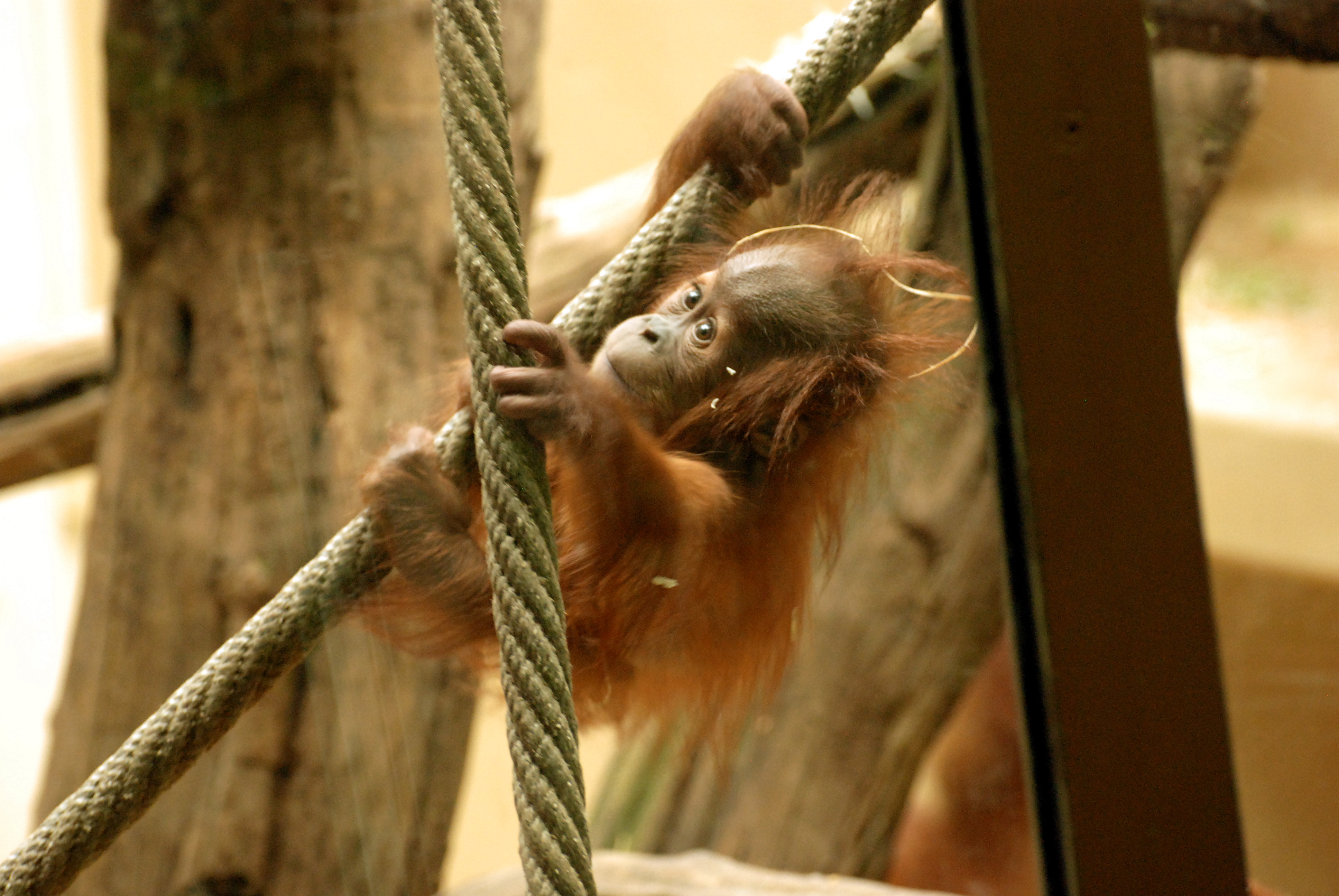 보르네오섬의 열대우림에 사는 보르네오오랑우탄은 사람과에 속하는 현존하는 가장 큰 나무 위 생활 유인원 중 하나로, 서식지 파괴와 밀렵으로 인해 심각한 멸종 위기에 처해 국제적인 보호를 받고 있다. - 오랑우탄 - 타파눌리오랑우탄