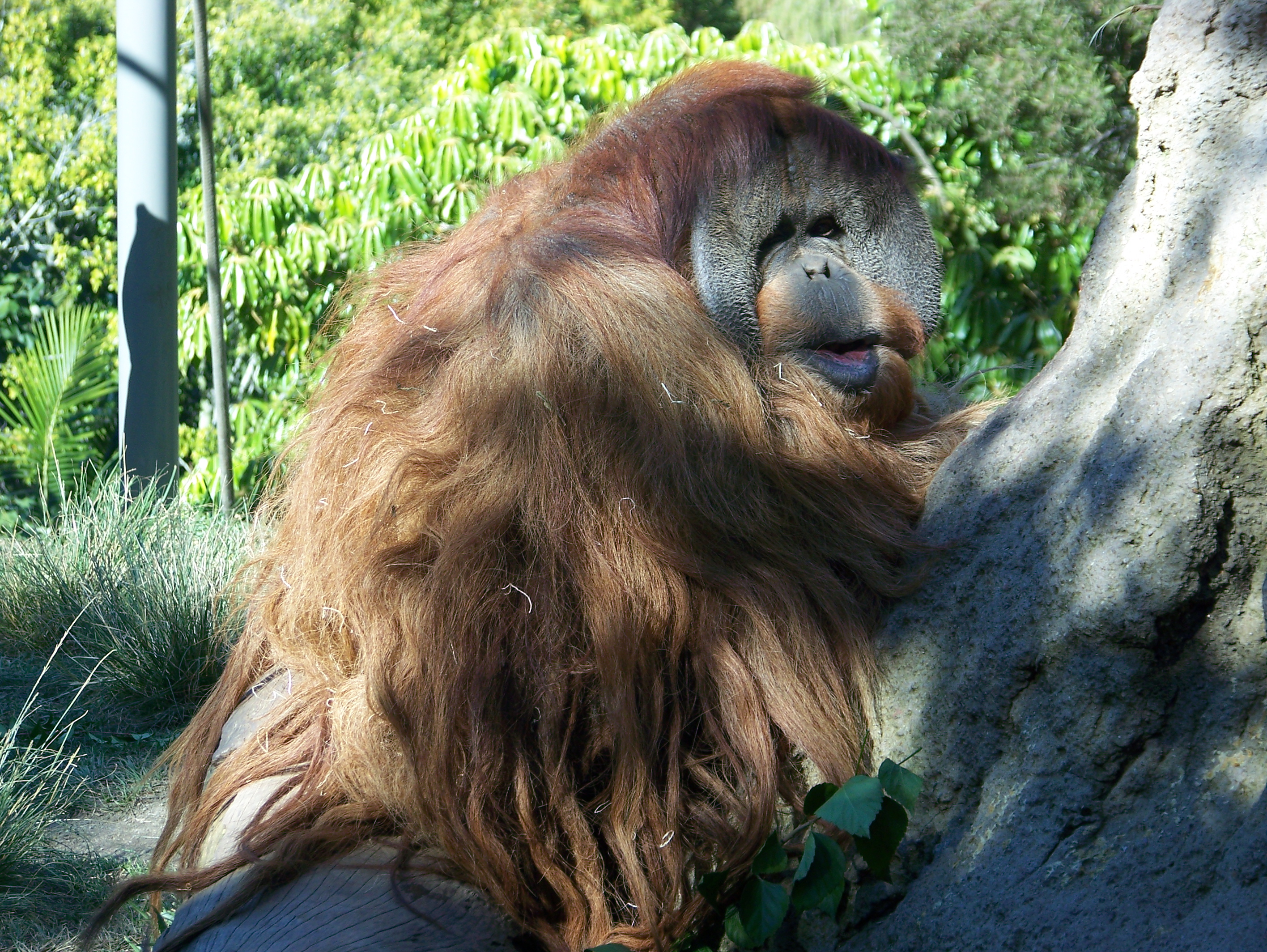 보르네오섬의 열대우림에 사는 보르네오오랑우탄은 사람과에 속하는 현존하는 가장 큰 나무 위 생활 유인원 중 하나로, 서식지 파괴와 밀렵으로 인해 심각한 멸종 위기에 처해 국제적인 보호를 받고 있다. - 게놈 해독이 완료된 동물 - 개