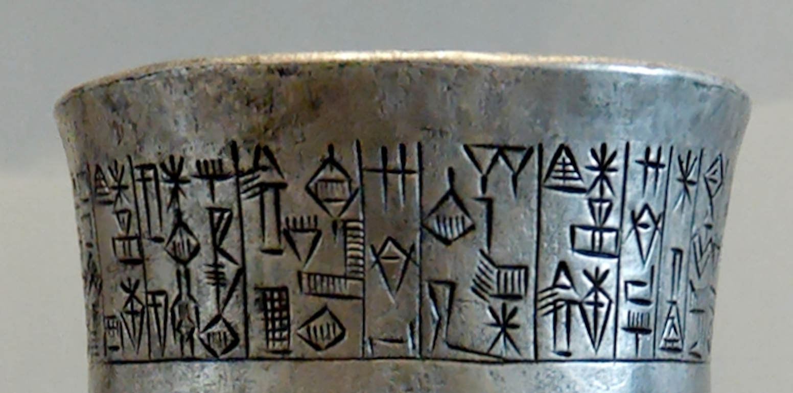 기원전 약 3000년 무렵까지 초기 수메르어 문자는 사물을 간략히 그려 넣은 그림 기호에서 출발하였다. 이후 이 그림 문자들이 보다 간략히 정리되면서 점토에 쐐기 모양의 철필을 이용하여 새긴 설형문자로 발전하였다. 초기 설형문자는 여전히 하나의 문자가 하나의 의미를 뜻하는 상형문자의 성격을 갖고 있었으나, 시간이 지남에 따라 음절의 음가만을 표기하는 음절문자로 발전하게 되었다.[563]
