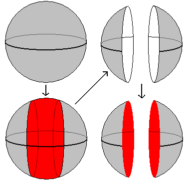 구 위에 1-수술을 가하면, 두 개의 구를 얻는다.