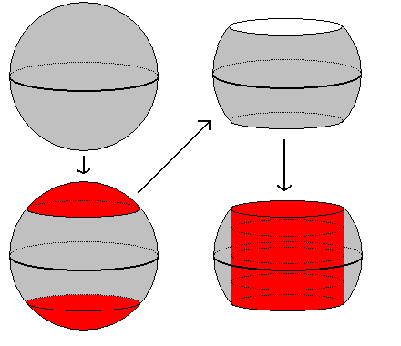 여기서 는 차원 초구이며 는 차원 닫힌 공이다. 이 때 의 상에 해당하는 의 부분다양체 의 경계는 의 경계와 같다.