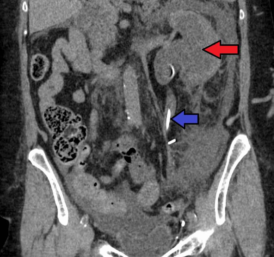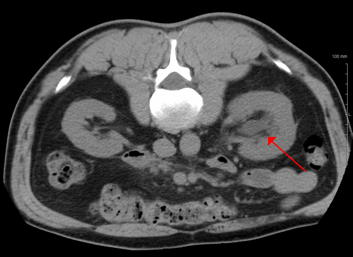 증상 | 알려진 증상 없음 (경증), 옆구리 통증 (중증), 혈뇨 |