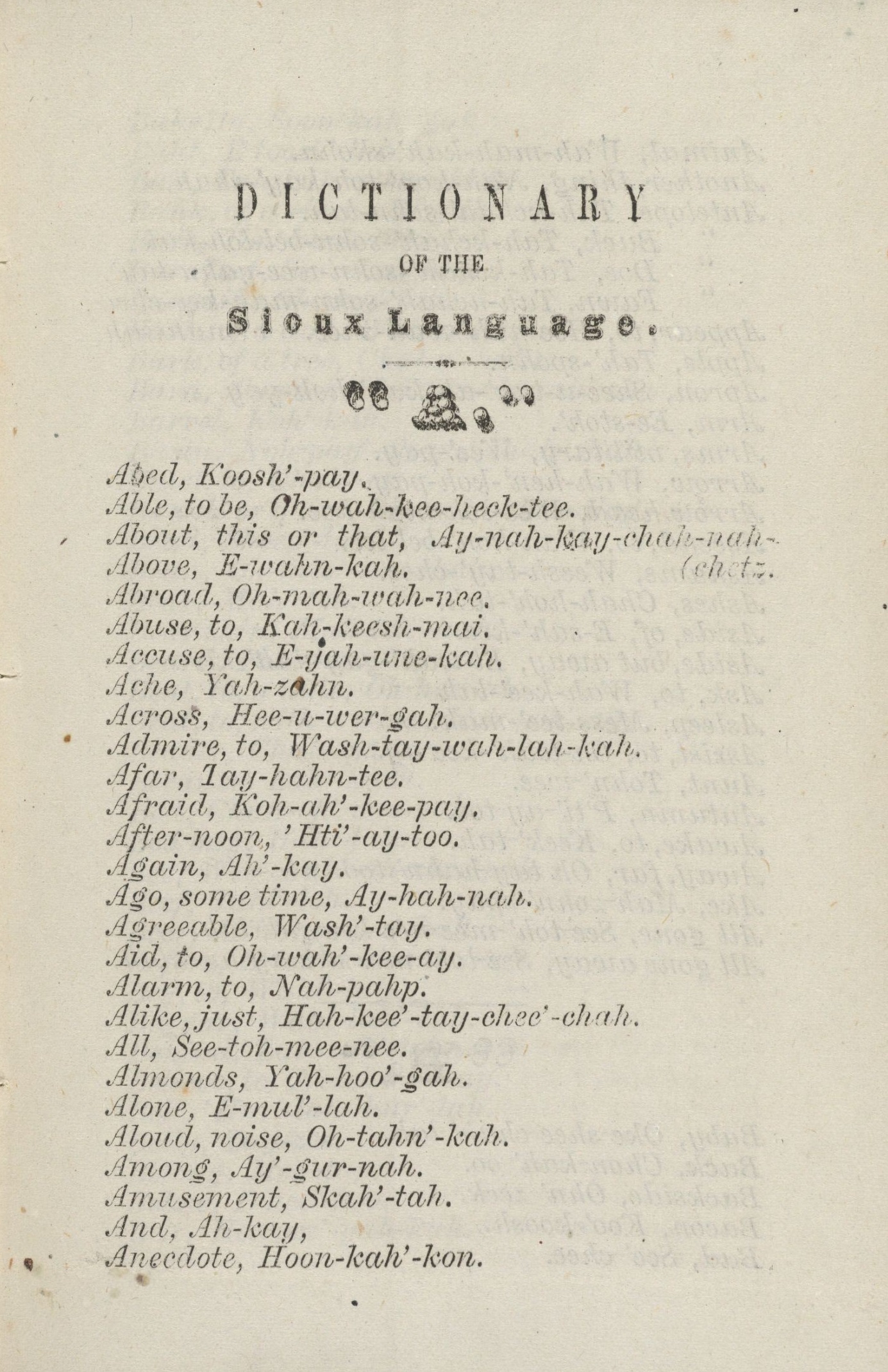 영어 풀이 | 산티-시세톤 | 양크톤-양크토나이 | 라코타어 | |