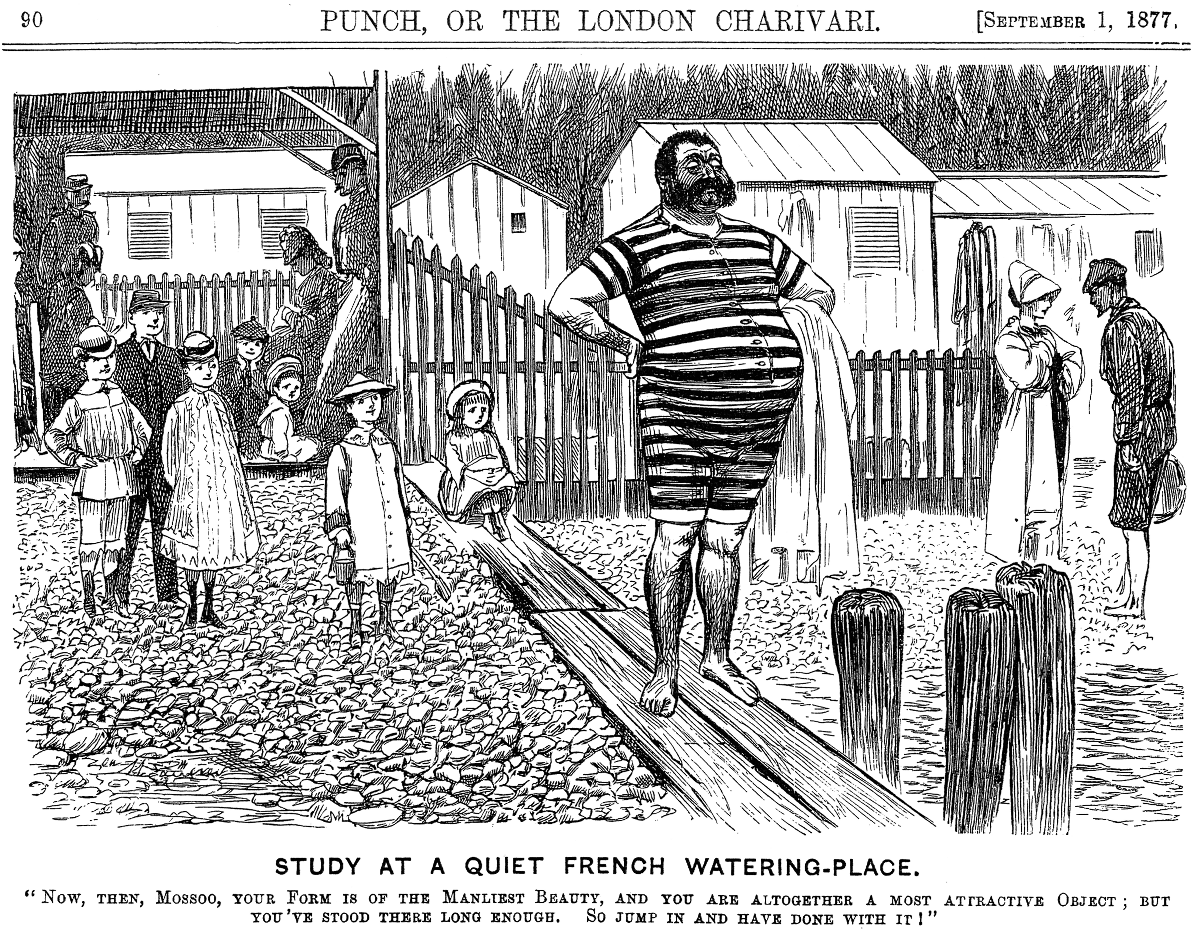 19세기에 철도망이 발달하면서 일반 사람들도 해변으로 피서를 가는 것이 쉬워졌다. 이에 따라 수영복이 등장하기 시작했는데, 1800년대에는 물에 젖어도 살이 비치지 않도록 서지, 플란넬, 알파카 등의 원단으로 만들어졌다. 초기 수영복은 길이가 길고 헐렁하여 몸을 가리는 형태였다. 1850년 즈음 투피스 수영복이 등장했고, 1890년대에 파리 패션계의 유행이 수영복에 영향을 주면서 외출복과 크게 다르지 않을 정도로 화려해졌다. 이는 산업혁명으로 축적된 부가 만들어낸 부르주아 문화의 영향이었다.