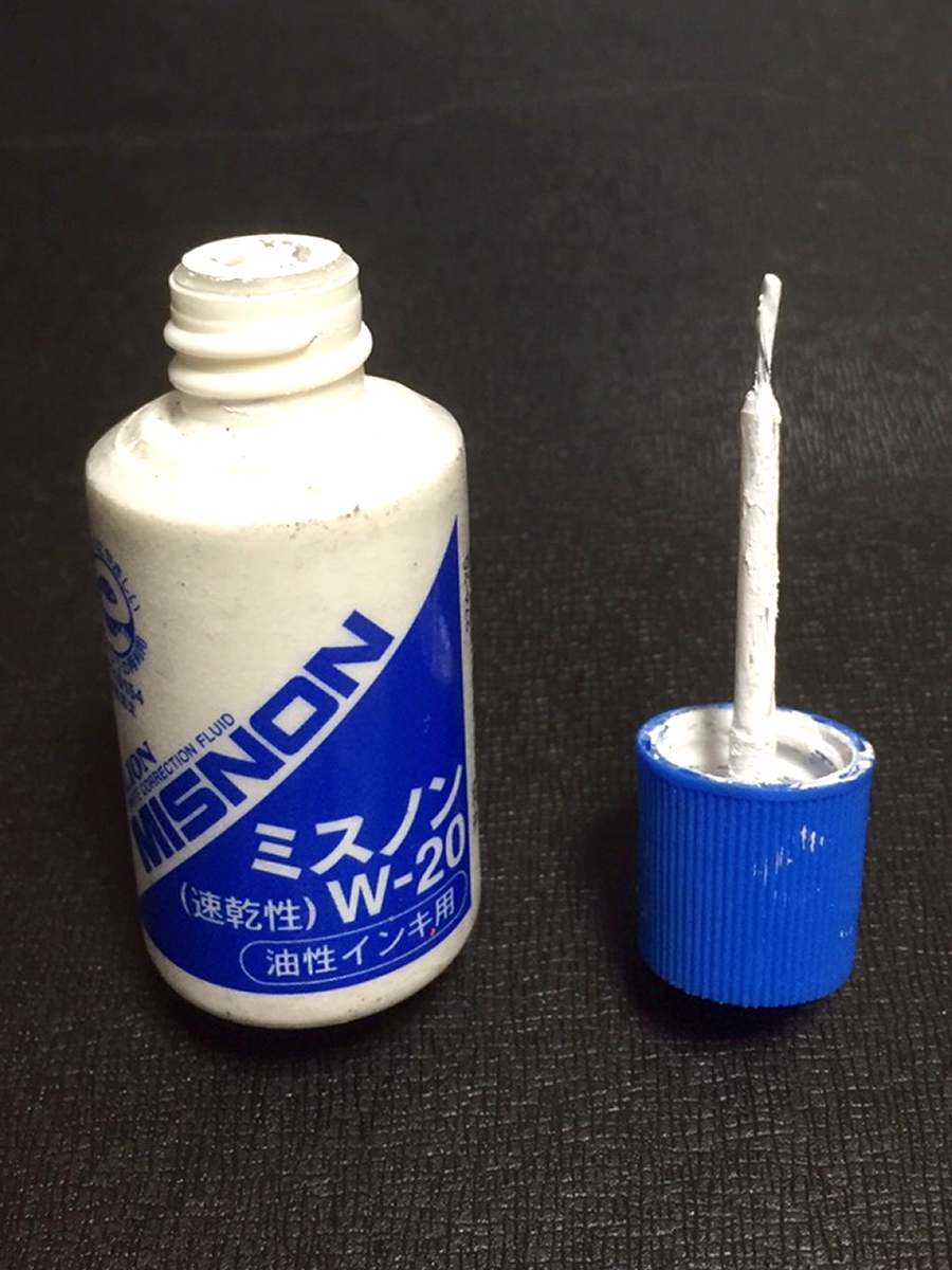 1970년대, 마루주 카세이가 "'''미스논 600'''"을 개발·발매했다. 일본 국내 최초의 "수정액"이며, 이 제품은 국내에서 수정액의 대명사적인 존재가 되었다.[9]