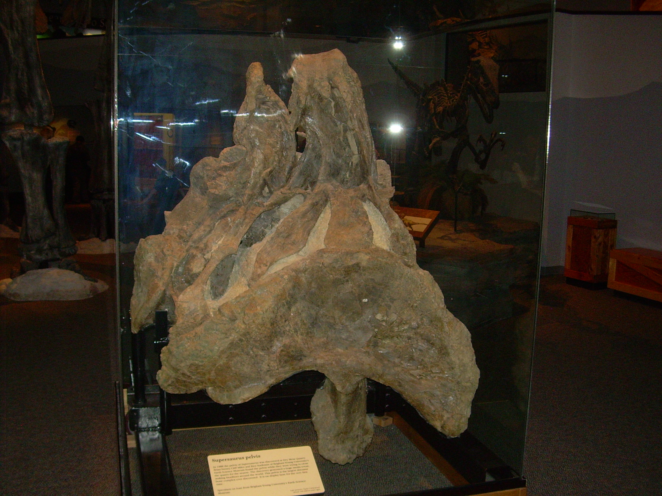 ''수페르사우루스''의 최초 화석은 1972년 드라이 메사 채석장에서 발견되었다. 이 발견에서는 어깨뼈, 좌골, 꼬리 척추뼈 등 몇 개의 뼈만 발견되었다. 고생물학자 제임스 A. 젠슨은 ''수페르사우루스''를 기술했으며, 견갑골 BYU 9025(원래 BYU 5500으로 표기됨)를 모식 표본으로 지정했다. 이 견갑골은 세웠을 때 2.4m 높이였다. 이 표본은 1973년 초에 비공식적으로 "수페르사우루스"라는 이름이 붙었지만,[5][6] 10년 이상 지난 1985년에 공식적으로 기술되고 명명되었다.[8] 사우로포드 연구자 잭 맥킨토시는 한때 BYU ''수페르사우루스'' 자료가 바로사우루스의 대형 종을 나타내는 것일 수 있다고 생각했지만, 나중에는 ''수페르사우루스''가 유효한 속이라는 증거가 있다고 생각했다.[7]2. 2. 울트라사우루스