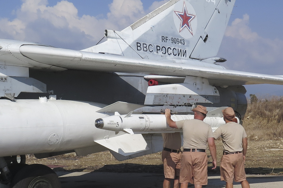 러시아 항공우주군의 역내 장거리 타격 능력은 러시아가 시리아 라타키아에 있는 자국 기지에 파견한 12대의 Su-24M2 폭격기에서 비롯된다.[33] 2015년 11월 24일, 러시아 수호이 Su-24M 1대가 격추되어 터키-시리아 국경 근처에서 터키 공군 F-16 전투기 2대에 의해 격추되었다. 두 명의 승무원은 항공기가 시리아 영토에 추락하기 전에 탈출했다. 러시아는 해당 제트기가 시리아 영공을 벗어나지 않았다고 주장한 반면, 터키는 해당 제트기가 자국 영공에 진입했으며 격추되기 전 10~12차례 경고했다고 주장했다.[34][35]