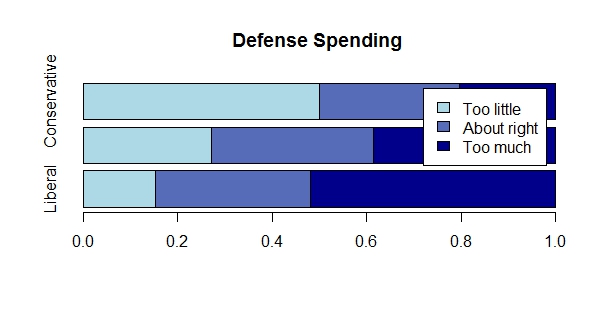 색상 또는 그레이스케일 그라데이션은 데이터의 순서적 특성을 나타내는 데 사용될 수 있다. 소득 범위와 같은 단일 방향 척도는 단일 색상의 채도 또는 밝기가 증가(또는 감소)하는 막대 그래프로 나타낼 수 있으며, 이는 더 높은(또는 더 낮은) 소득을 나타낸다. 리카트 척도와 같은 이중 방향 척도로 측정된 변수의 서열 분포는 누적 막대 그래프에서 색상으로도 표시될 수 있다. 중립적인 색상(흰색 또는 회색)은 중간점(0 또는 중립)에 사용될 수 있으며, 중간점과 반대 방향으로 대비되는 색상을 사용하여 색상의 채도 또는 어두움이 증가하면 중간점에서 멀어지는 카테고리를 나타낼 수 있다.[14] 구역도 역시 색상 또는 그레이스케일 음영을 사용하여 서열 데이터를 표시한다.[15]