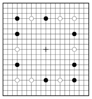 특징 | 기존 바둑 규칙과 달리, 정해진 위치에 미리 돌을 놓고 시작 초반 포석 과정 생략 비교적 짧은 시간에 승패 결정 가능 |