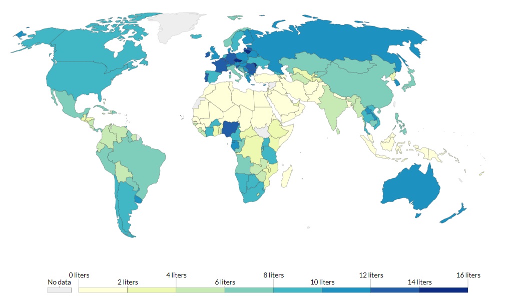 술의 역사는 매우 오래되었다. 기원전 9000년경 메소포타미아에서는 이미 맥주를 만들어 마셨고, 고대 그리스 시대에는 지중해 연안 곳곳에서 와인이 생산되었다. 한국에서는 삼국시대 이전부터 술을 만들어 마셨으며, 소주는 고려 시대 원나라를 통해 들어왔다.[167] 과거에는 물과 달리 술이 오염되지 않아 안전했고, 빵을 먹기 위해서도 술이 필요했다. 특히 평민들은 깨끗한 물을 구하기 어려워 물 대신 술을 많이 마셨으며, 군대의 필수 보급품으로 여겨지기도 했다. 이러한 전통은 현대에도 남아있다.[167]