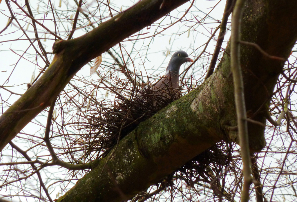 동유럽에서 가장 빨리 둥지를 트는 숲비둘기는 4월부터 7월까지 번식을 한다. 동유럽의 숲비둘기는 주로 러시아의 상트페테르부르크, 벨라루스 지역에서 여름을 보내며 러시아령 칼리닌그라드, 리투아니아, 라트비아 지역에서도 여름을 보낸다. 특히 리투아니아의 숲비둘기 개체는 다른 개체들보다 오래 동유럽에 머문다. 숲비둘기는 숲, 공원, 정원의 나무에서 번식하며, 17~19일 후에 부화하는 두 개의 흰색 알을 나뭇가지로 만든 간단한 둥지에 낳는다. 도로와 강 근처의 나무를 선호하는 것으로 보이며, 수컷은 번식기 동안 서로에게 뛰어들고 날개를 퍼덕이며 공격적인 행동을 보인다.[26]알은 산란과 동시에 15~17일가량 암수가 번갈아 가면서 품는데 이때 실패할 경우 종종 다시 새끼를 낳아 기르기도 한다. 이렇게 나온 새끼는 23~28일 정도의 시간을 둥지에서 보내고 독립한다. 둥지가 방해를 받으면 일부 새끼는 부화 후 20일 만에 둥지를 떠나 생존할 수 있다. 새끼는 보통 33~34일 만에 날아간다.[26]
