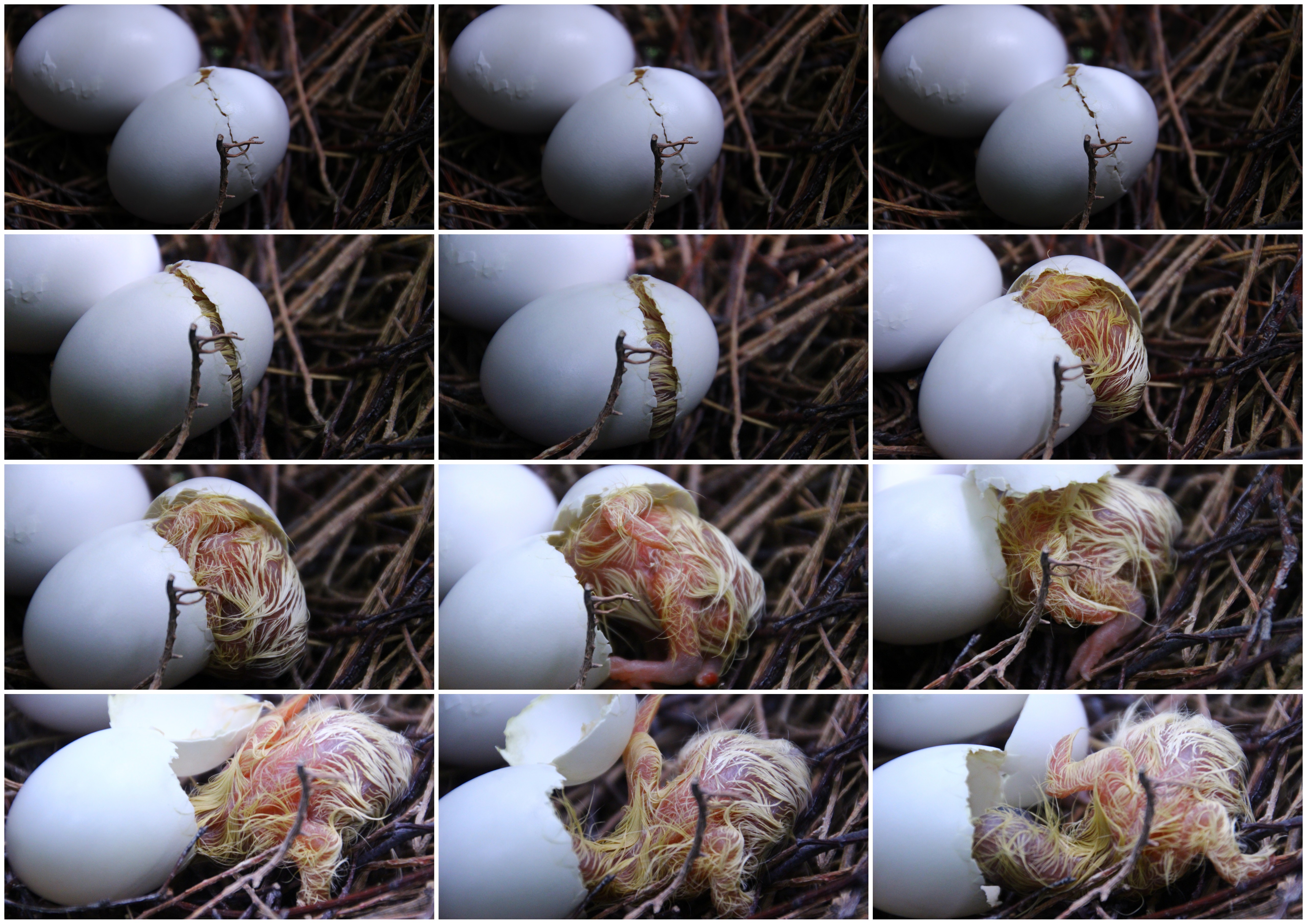 어린 새는 목 양쪽에 흰색 반점이 없다. 생후 약 6개월(둥지에서 약 3개월)이 되면 목 양쪽에 작은 흰색 반점이 생기며, 새가 약 6~8개월이 될 때 완전히 형성될 때까지 점차 커진다. 어린 새는 또한 어른 새보다 부리가 더 회색이며 전체적으로 더 밝은 회색을 띤다.