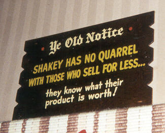 1954년, 캘리포니아주 새크라멘토에서 창업했다. 가게 이름 "쉐이키스"는 창업자 셔우드 존슨((英語版)이 가게 손님들과 자주 악수 (쉐이크 핸드)를 했던 데에서 유래되었다[27]。