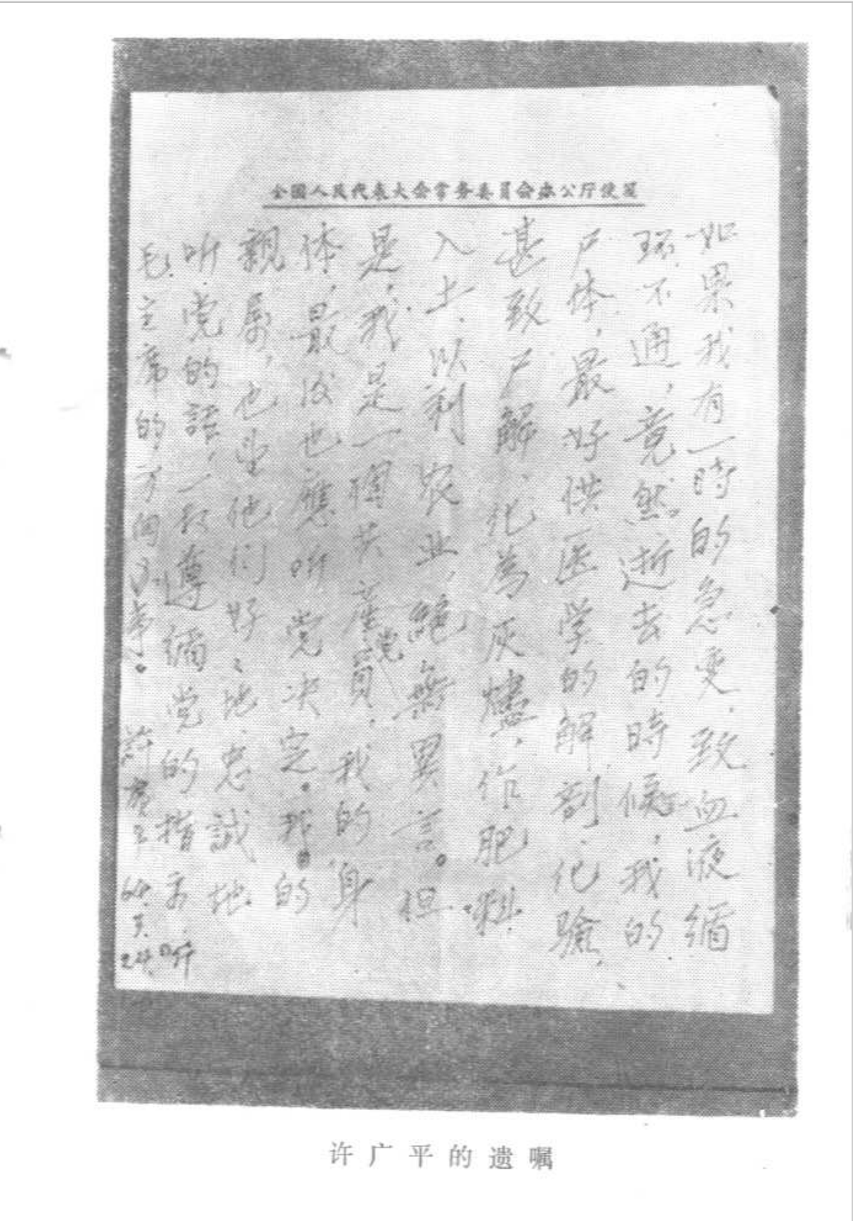 문화 대혁명이 시작된 이후에는 사별한 전 남편이자 프롤레타리아주의 문예 혁명가였던 루쉰의 각 저술과 서신의 친필 원본을 호신의 용도로 요구하는 홍위병들의 간섭에 직면하기도 하였으며, 전 남편 루쉰으로 인하여 갖가지로 고초를 겪는 중국 공산당 치하의 지식분자들과 중공의 동료 정치가들을 지켜보면서 베이징에서 지병으로 사망하였다.