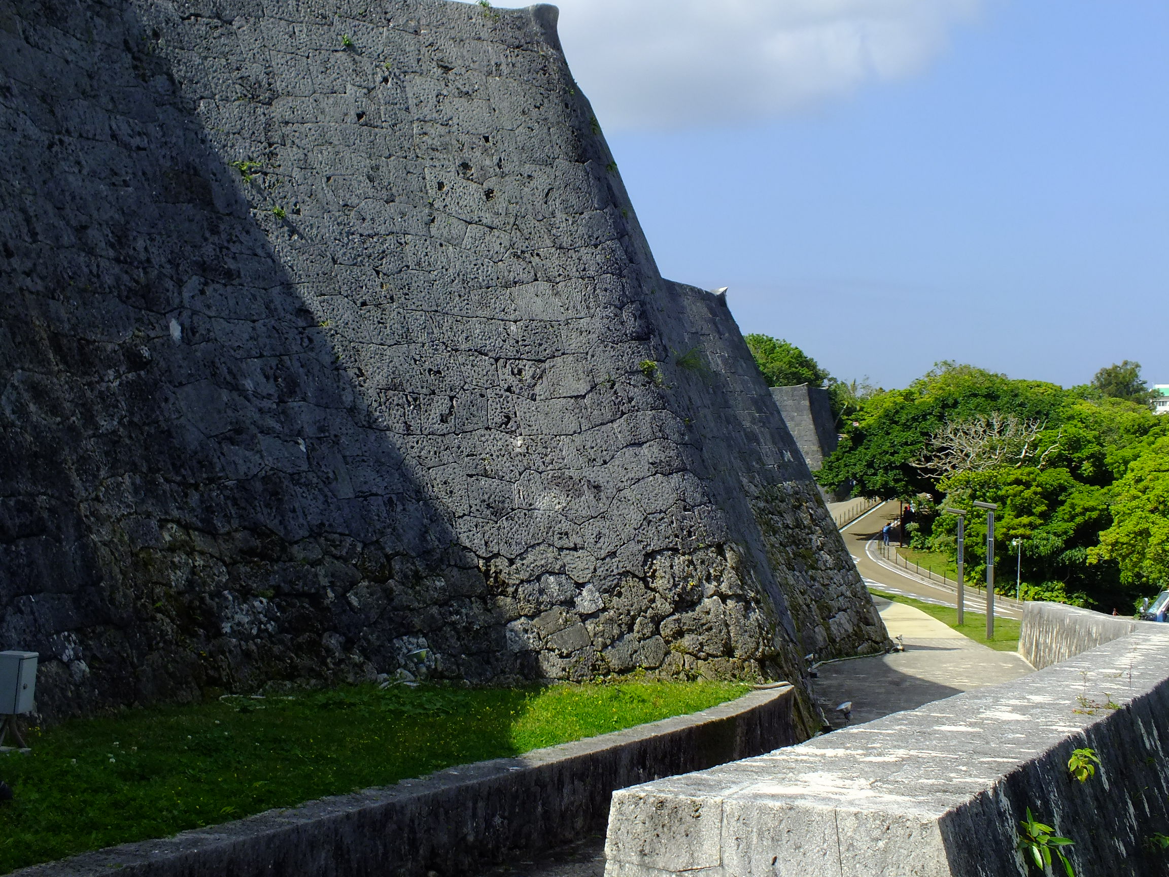 나카구스쿠성은 15세기 류큐 왕국 시대에 축성되어 고사마루에 의해 증축된 구스쿠 유적으로, 2000년 유네스코 세계유산으로 지정되었으며 다양한 석축 기술과 굴곡진 지형을 활용한 구조가 특징이다. - 오키나와현의 성 - 구스쿠
