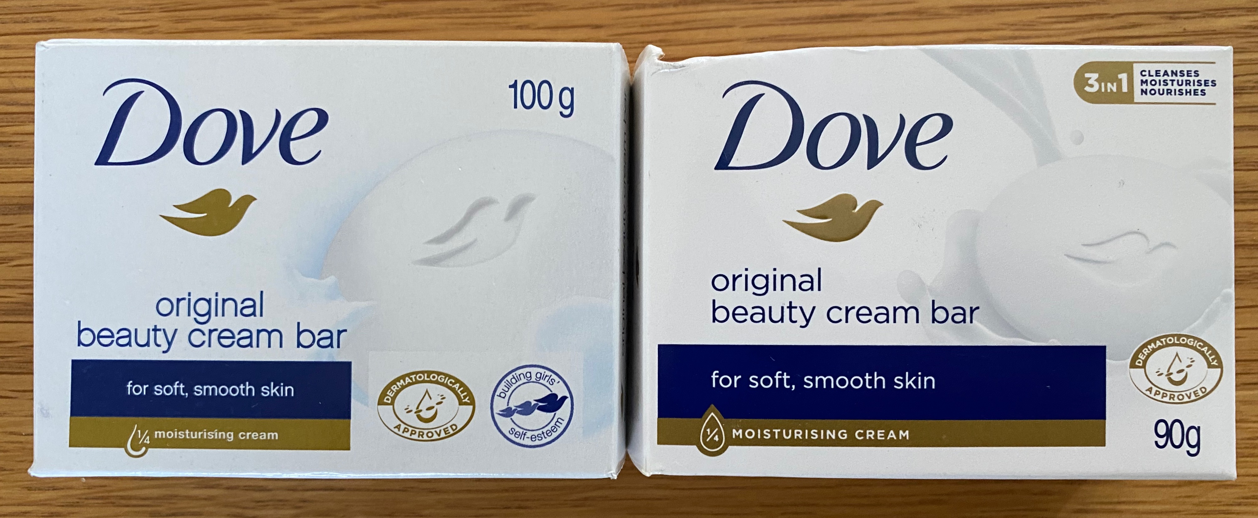 슈링크플레이션의 예: 도브 비누가 2022년에 10% 더 작아졌다