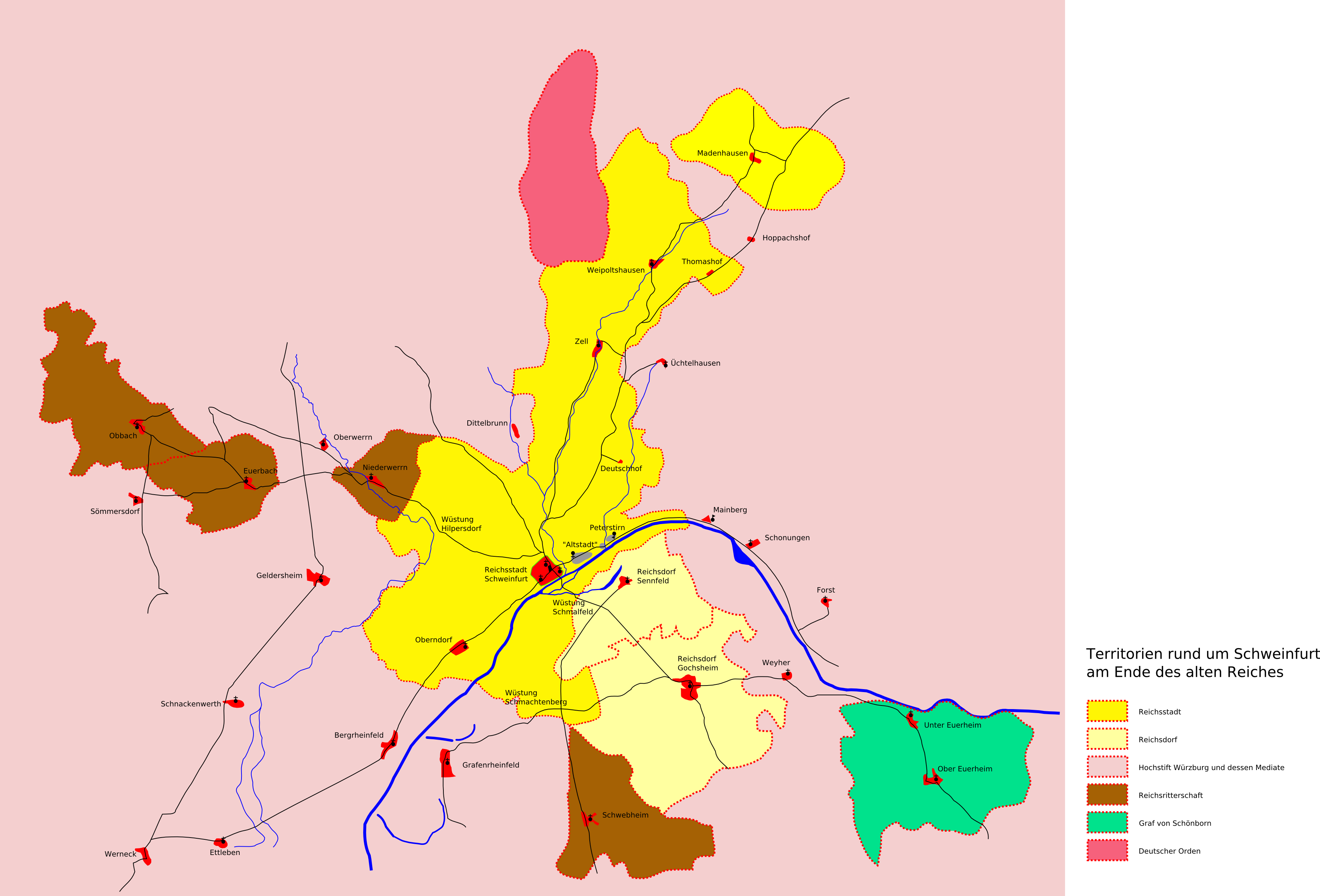 슈바인푸르트는 1802년까지 자유 제국 도시로 남아 있었으며, 이후 바이에른 선제후국에 넘어갔다. 1810년에는 뷔르츠부르크 대공국에 할당되었고, 4년 후 바이에른 왕국에 귀속되었다.