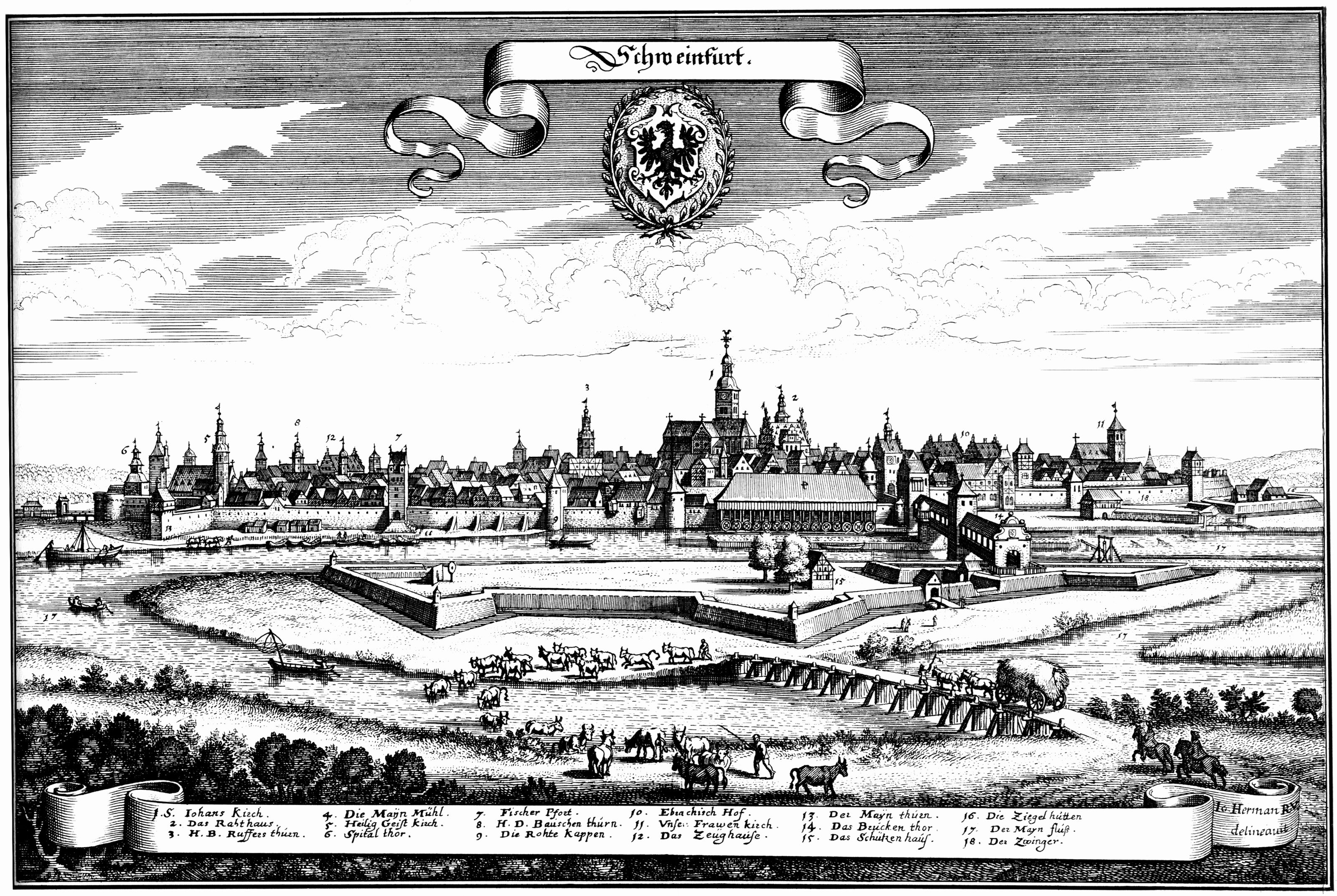 슈바인푸르트는 1609년 프로테스탄트 연합에 가입했다. 30년 전쟁 동안 구스타브 2세 아돌프에 의해 점령되었고, 그는 요새를 세웠으며, 그 잔해가 아직 남아 있다. 1652년에는 요한 로렌티우스 바우쉬, 요한 미하엘 페어, 게오르크 발타자르 볼파르트, 발타자르 메츠거 등 4명의 의사가 슈바인푸르트에 ''아카데미아 큐리오소룸''을 설립했는데, 이는 오늘날 독일 과학 아카데미 레오폴디나(German National Academy of Sciences Leopoldina)로 알려져 있다.