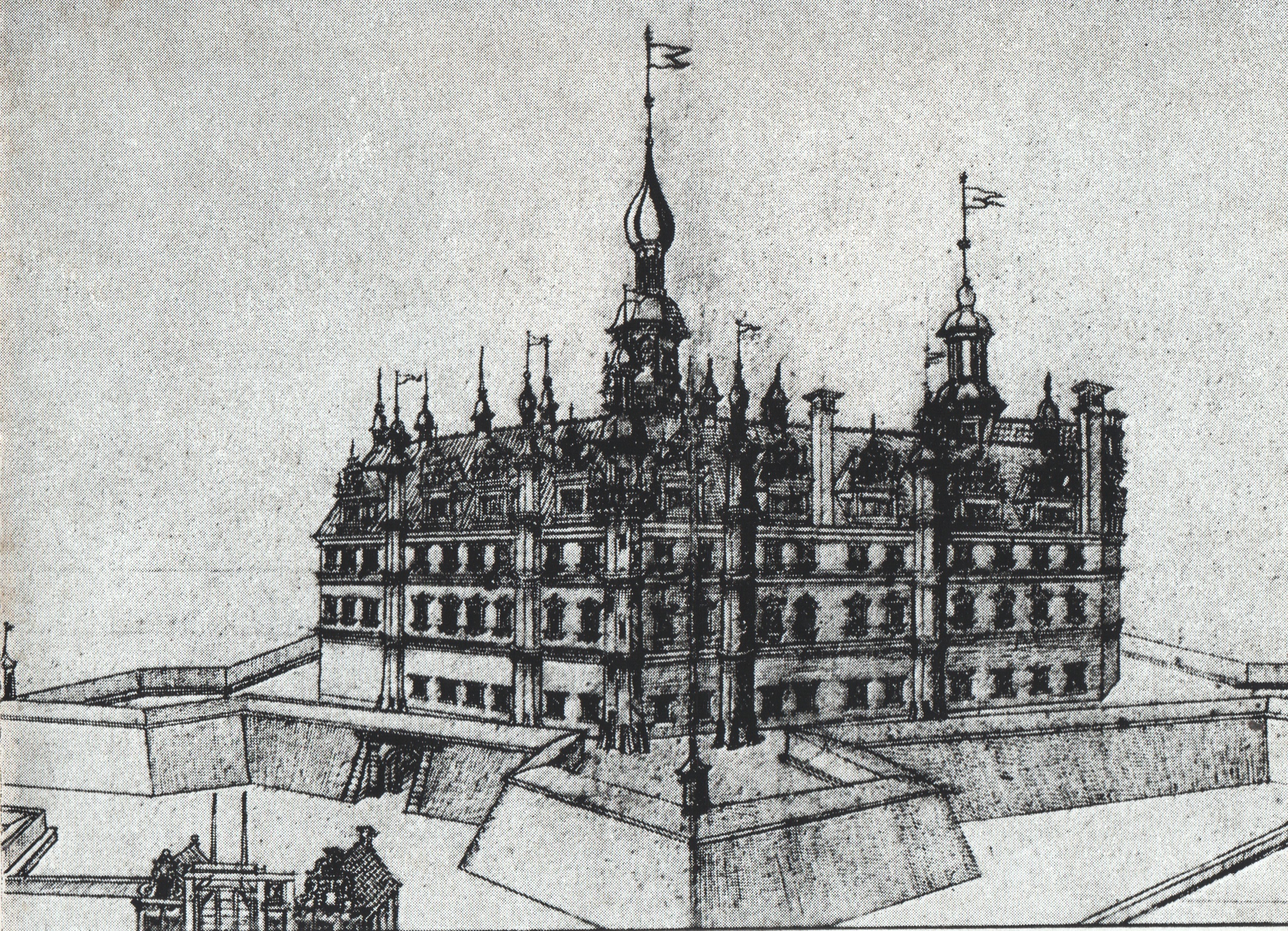30년 전쟁 이전인 1612년, 메클렌부르크에 고용된 건축가 게르트 에베르트 필롯은 네덜란드 르네상스 양식으로 궁전을 완전히 재건축할 계획을 세웠다. 1617년 그의 감독하에 공사가 시작되었지만, 전쟁으로 인해 곧 중단되었다.[9] 1635년과 1643년 사이에 필롯의 계획은 부분적으로 실현되었다. 궁전 부엌 위와 예배당 위 건물은 철거되고 네덜란드 르네상스 양식의 정면이 부여되었다.[9]