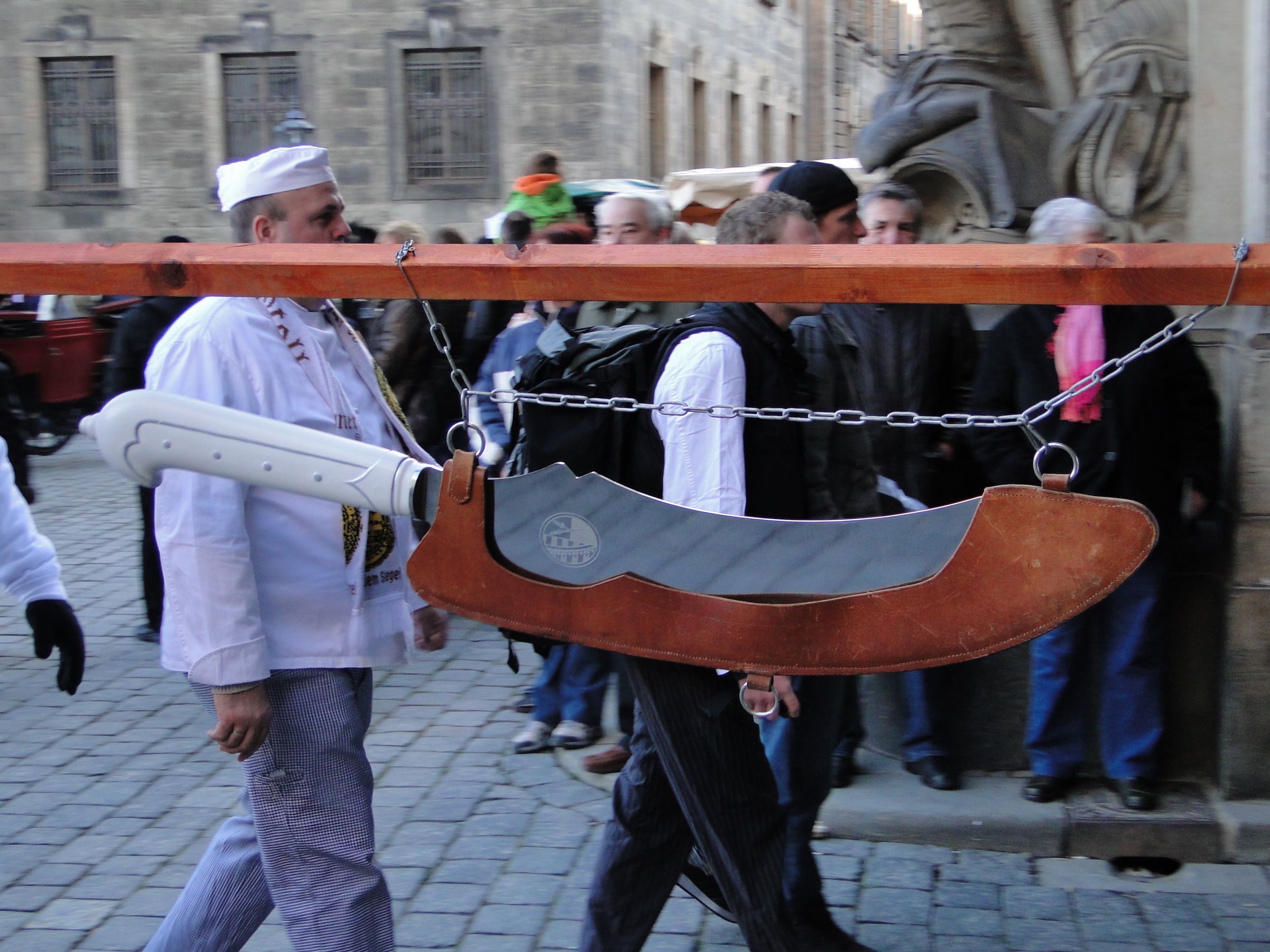 오늘날 축제는 대림절 두 번째 주일 전 토요일에 열리며, 케이크의 무게는 3~4톤이다. 마차는 드레스덴 거리를 행진하며 케이크를 크리스마스 마켓으로 옮기고, 그곳에서 의례적으로 조각으로 잘라 소액의 지불을 받고 군중에게 나눠주며, 이 수익금은 자선단체에 기부된다. 잃어버린 1730년 바로크 오리지널 칼을 복제한 1.6m 길이의 은도금 칼인 그랜드 드레스덴 슈톨렌 칼은 드레스덴 크리스마스 박람회에서 대형 슈톨렌을 자르는 데 사용된다.[14]