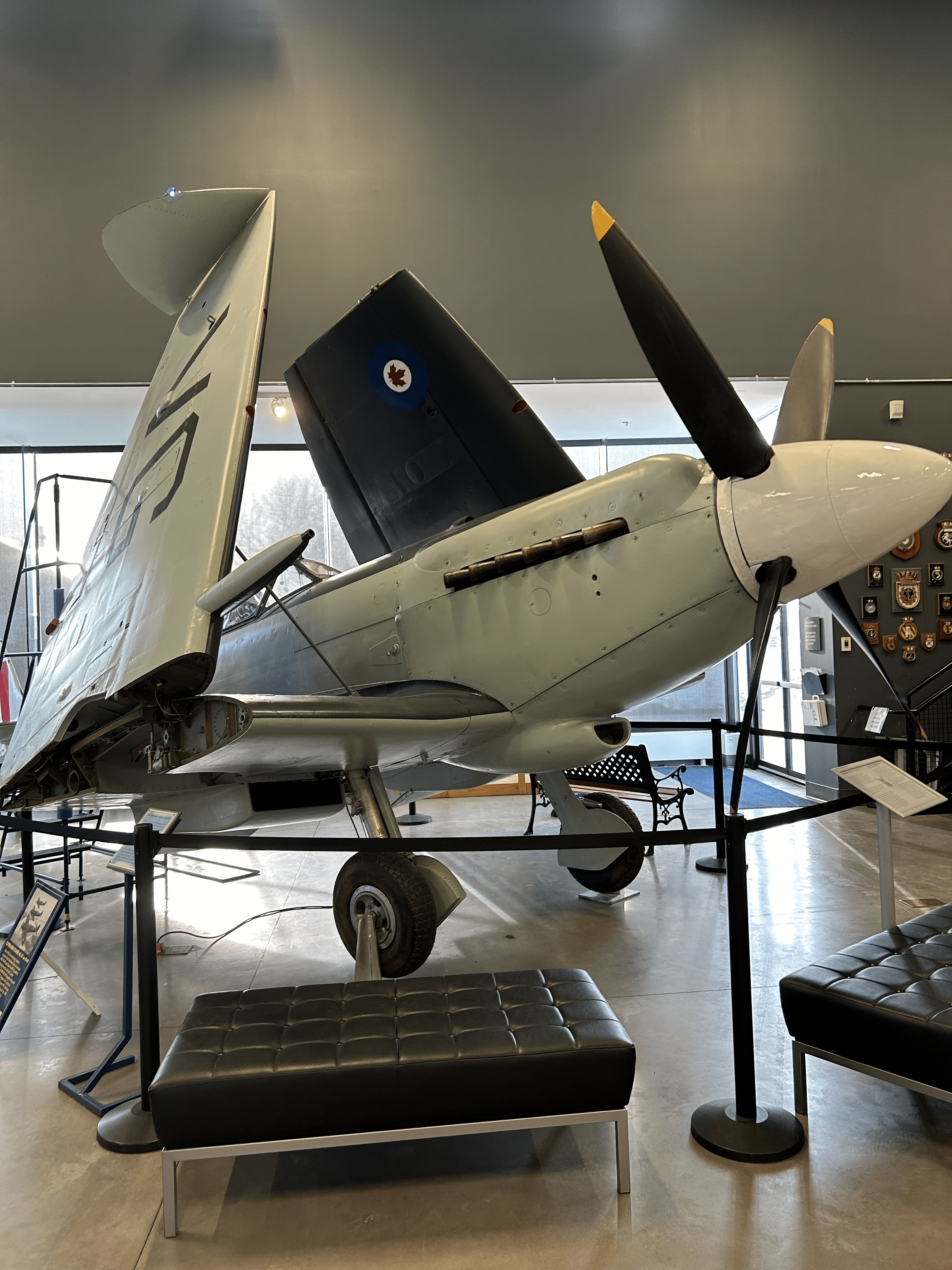 날개가 접힌 상태의 시파이어 F Mk.XVc, 캐나다 앨버타주 캘거리 군사 박물관에 전시되어 있다.
