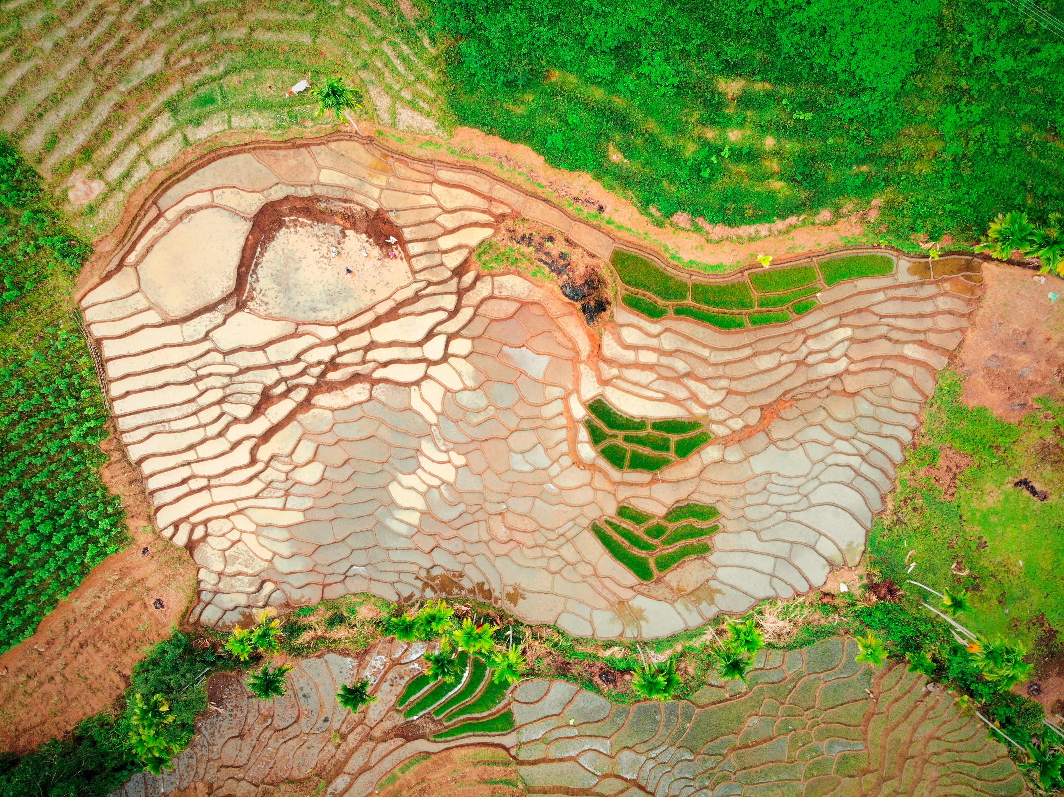스리랑카는 선사 시대부터 농업이 이루어졌으며, 당시 토지 대다수는 농업에 사용되었다.[25] 식량은 거의 전부 자급자족하였으며, 외부와의 농산물 무역은 거의 없었다.[25][4] 최초의 농업 정착촌은 북부 강가와 동남부 평원에 위치했으며, 비가 많이 내리는 기후 특성상 논 농사가 발달하였다.[25] 고대 스리랑카 문명에서는 관개 기술이 발달하였는데, 수천 개의 소규모 저수지를 만들어 건조한 지역에 논 농사를 위한 물을 공급하여 건기에도 농사를 지을 수 있게 하였다.[25][4] 고지대에서는 자연 강우에 의존해 부수적 작물을 재배하였다.[25] 19세기 이전까지 스리랑카의 주요 산업은 농업이었다.[25]2. 2. 플랜테이션 농업의 도입