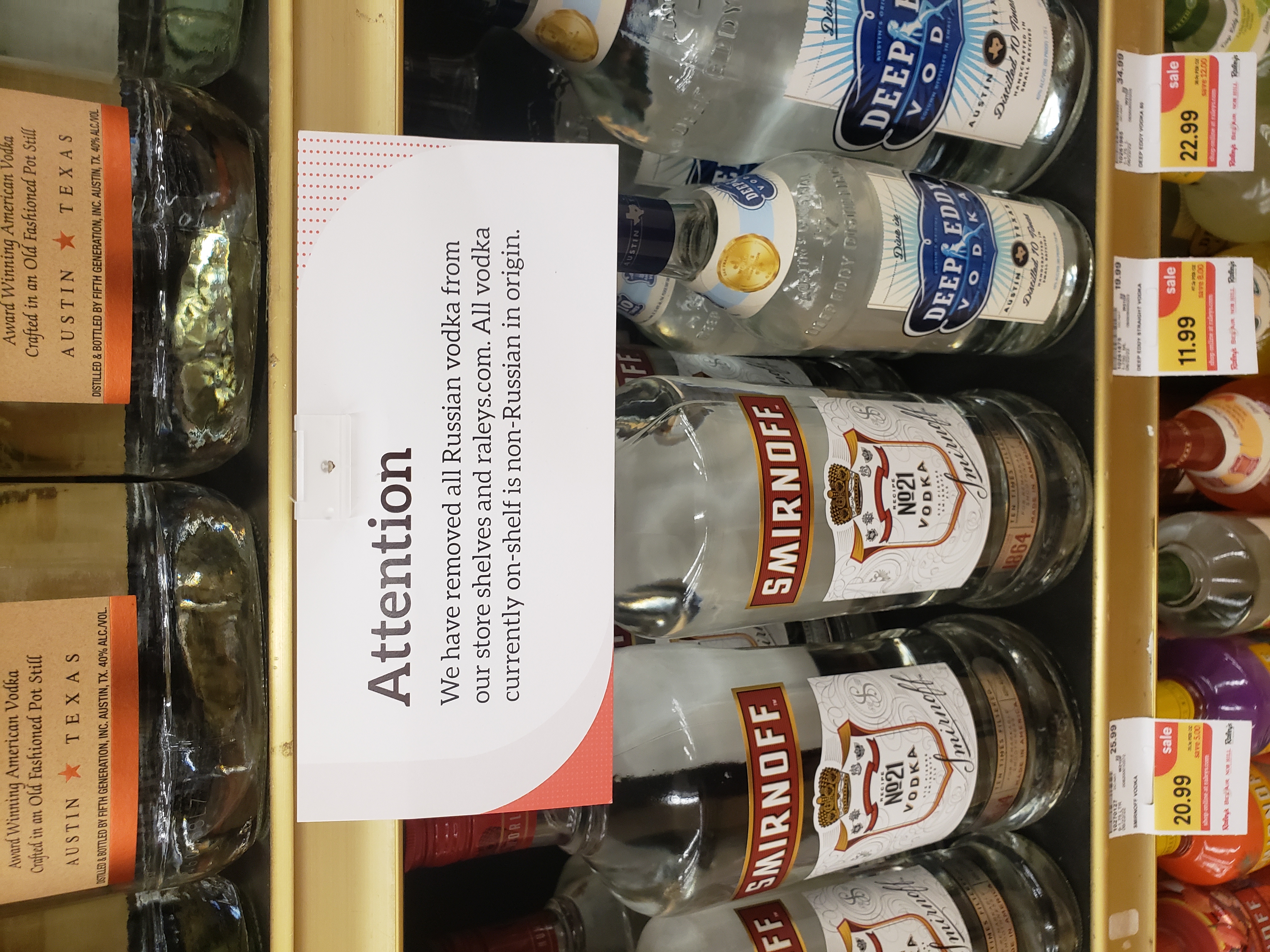 스미르노프는 러시아의 우크라이나 침공 기간 동안 실수로 불매 운동의 대상이 되었지만, 러시아 기원에도 불구하고 이 브랜드는 영국 회사 디아지오의 소유이며 미국 시장을 위해 일리노이에서 제조된다.[17]