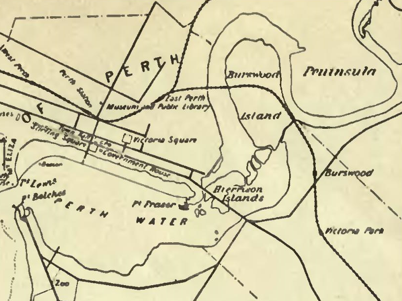 - '''벨치스 포인트''' - 나중에 사우스 퍼스의 밀 포인트로 알려졌다. 원래 깊고 반원형 만을 둘러싼 모래 곶으로 존재했다. 이 지역은 나중에 밀러스 풀로 명명되었으며, 결국 매립 및 확장되어 현재의 사우스 퍼스 반도가 되었으며, 내로우스 브리지와 키위나 고속도로가 이에 인접해 있다.