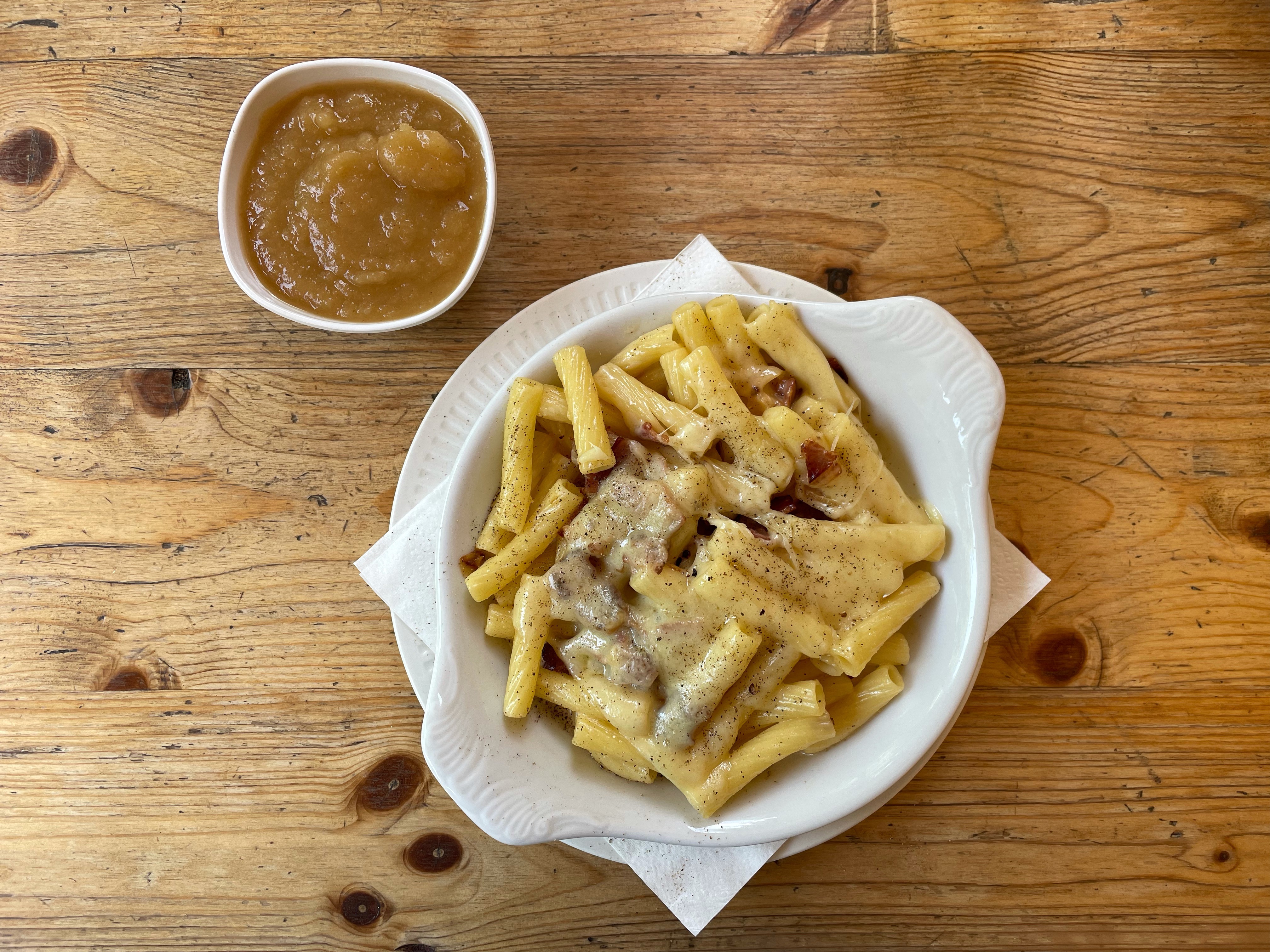 - Älplermagronen(알프스 목동식 마카로니): 알프스 산간 오두막집에서 목동들이 손에 넣을 수 있는 재료, 즉 마카로니, 감자, 양파, 작은 베이컨 조각, 녹인 치즈를 사용하여 만든 절약적인 일품 요리이다. 전통적으로 Älplermagronen은 야채나 샐러드 대신 사과 소스와 함께 제공된다.