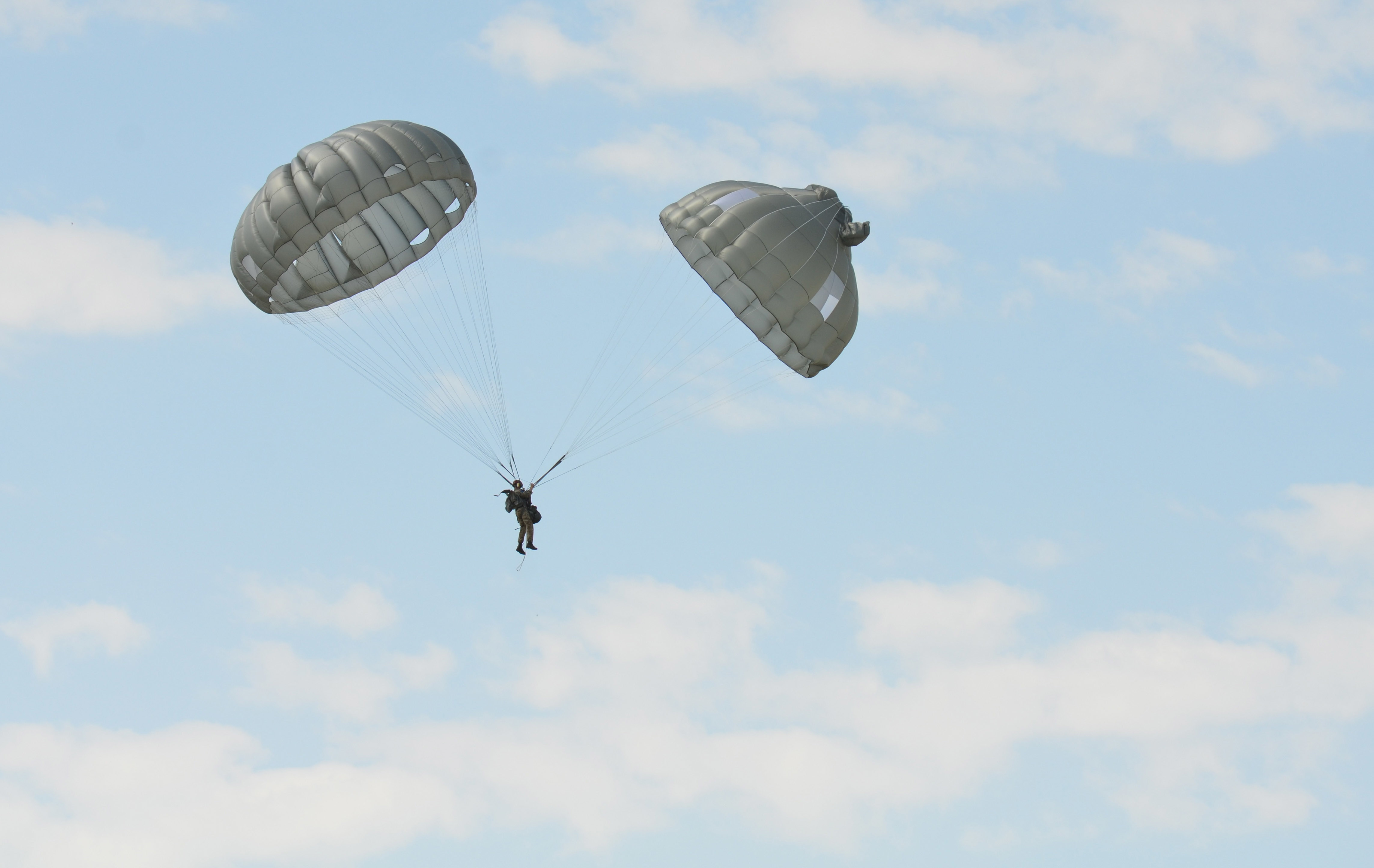 제1차 세계 대전 중에는 독일군 조종사들이 항공기 비상 탈출을 위해 낙하산을 사용하기 시작했다.[77] 제2차 세계 대전 중에는 공수부대와 보급품을 배치하는데 낙하산이 광범위하게 사용되었다.[77][78][79][80][81][82][83] 현대에도 특수작전 부대에서 적진 침투 방법으로 낙하산을 활용하고 있다.2. 3. 스포츠 스카이다이빙의 발전
