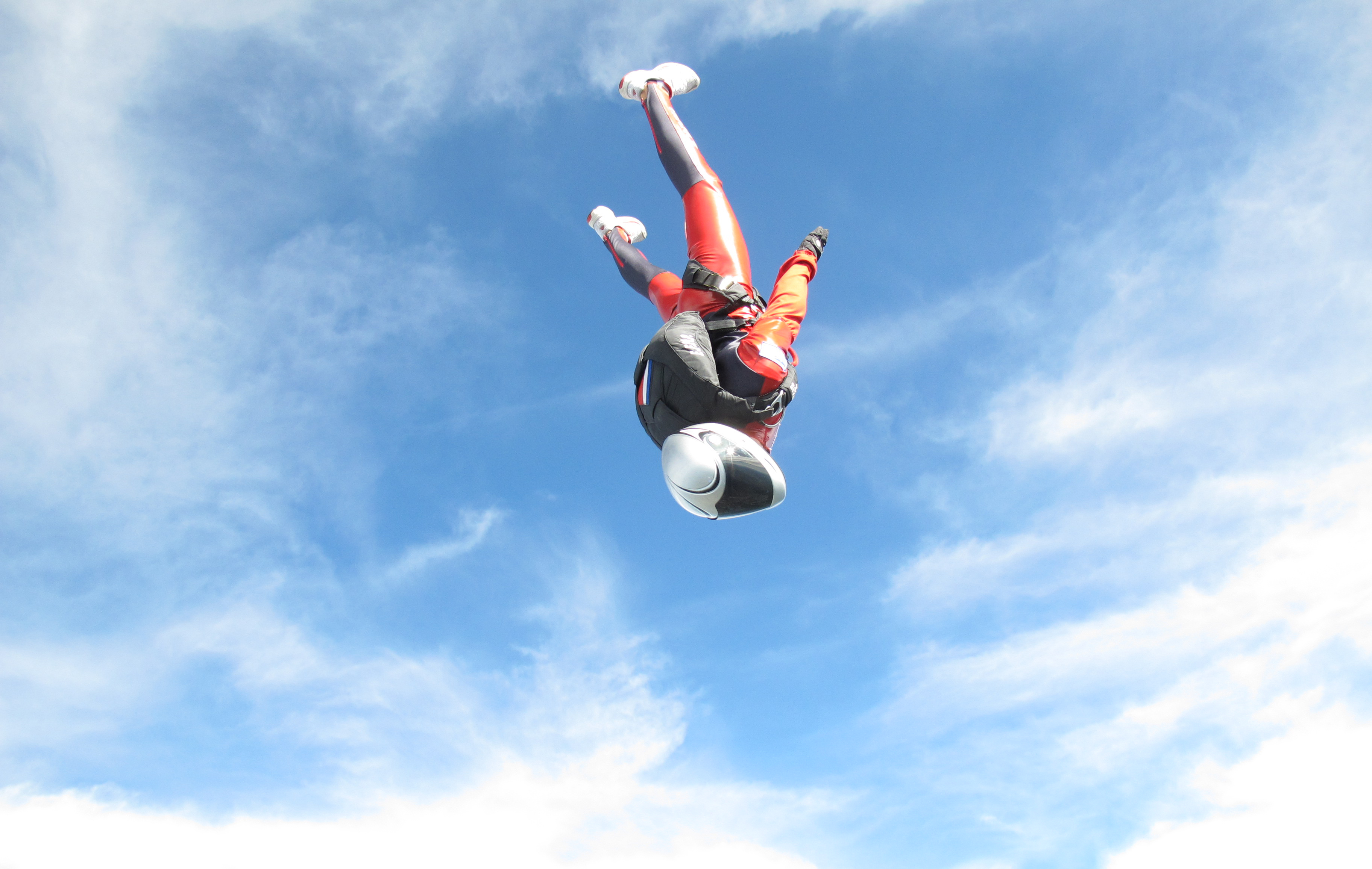 배면비행(俯せ의 자세)의 경우, 낙하 속도는 공기저항과 중력가속도가 균형을 이루어 시속 200킬로미터 정도로 안정된다. 머리를 아래로 한 자세에서는 공기저항이 줄어들어 시속 300킬로미터 정도까지 속도를 높일 수 있다.