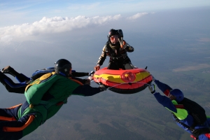 - 탠덤 점프: 학생 스카이다이버가 강사와 하네스로 연결되는 스카이다이빙의 한 유형이다.[17] 강사는 출발부터 자유낙하, 캐노피 조종, 착륙까지 점프 전 과정을 안내하며, 학생은 최소한의 교육만으로 스카이다이빙을 경험할 수 있다.[17]