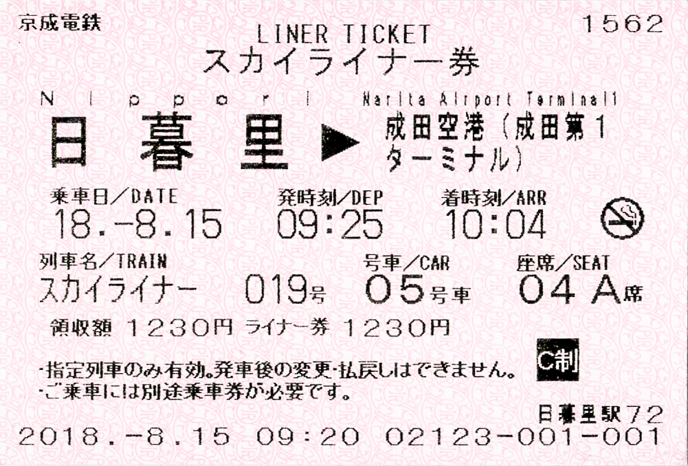 종점 (스카이라이너) | 나리타 공항역 |