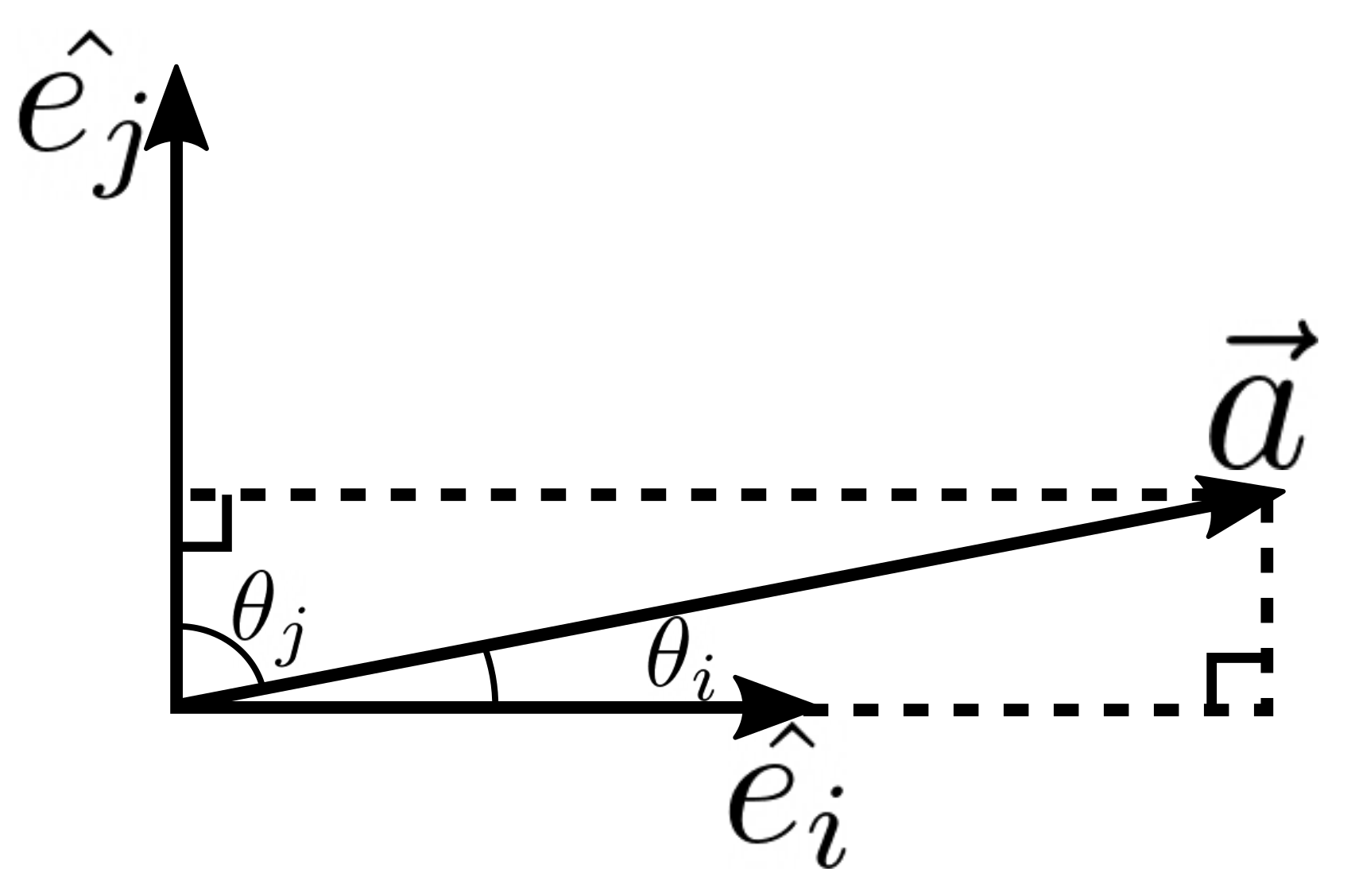 기하학적 정의에 의해, 임의의 벡터 \mathbf{e}_i와 벡터 \mathbf{a}에 대해, 다음 관계가 성립한다.