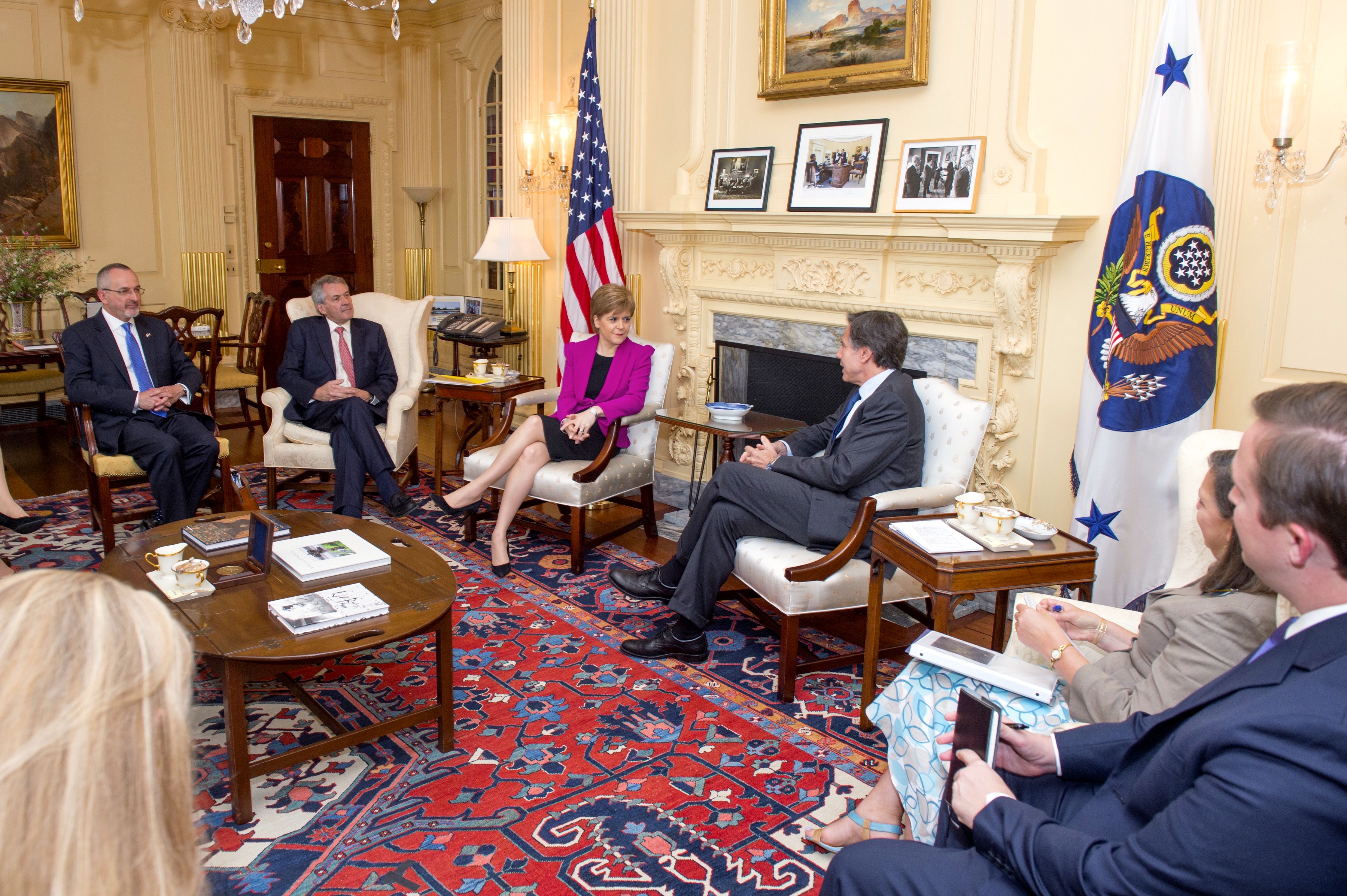 2017년 스터전과 EU 지도자 장클로드 융커의 만남. 친유럽주의는 스코틀랜드 국민당의 핵심 가치였다.