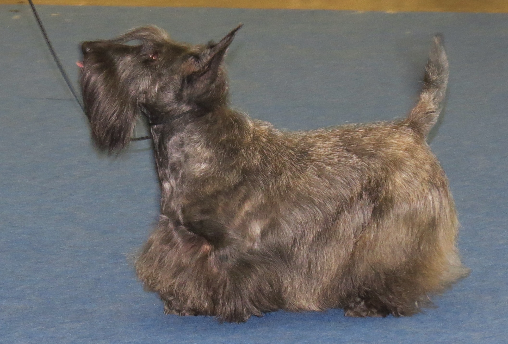 19세기 말, 도그 쇼가 발전하면서 스코티시 테리어는 별도의 품종으로 인정받기 시작했다. 이 견종은 애버딘 지역에서 많이 사육되었고, J. A. 애덤슨이 1870년대에 성공적으로 도그 쇼에 출전시키면서 "애버딘 테리어"라는 이름으로도 알려졌다.[5] 애덤슨의 로저 러프, 미스터 페이튼 피고트의 타탄, 루드로와 브롬필드의 본 아코드, 루드로의 스플린터 II는 초기 도그 쇼 우승견들이었으며, 이 네 마리가 모든 스코티시 테리어 족보의 기원이 되었다.[21] 신디 쿡은 저서에서 스플린터 II를 "현대 스코티시 테리어의 기초 모견"이라고 칭하며, 초기 사육자들이 이 암컷을 중심으로 근친 교배를 했다고 설명한다.[7]1879년 고든 머레이 대위와 S.E. 셜리는 스코티시 테리어의 유형을 정립하는 데 기여했다.[3] 같은 해 알렉산드라 팰리스에서 처음으로 전시되었고,[9][10] 1880년에는 J.B. 모리슨과 D.J. 톰슨 그레이가 작성한 최초의 공식 표준이 발표되었다. 이 표준은 품종의 유형과 이름을 정하는 데 큰 영향을 미쳤지만, 당시에는 "회색, 그리즐 또는 얼룩무늬" 색상을 묘사하여, 검은색 스코티시 테리어가 일반화된 것은 20세기 이후였다.[5]