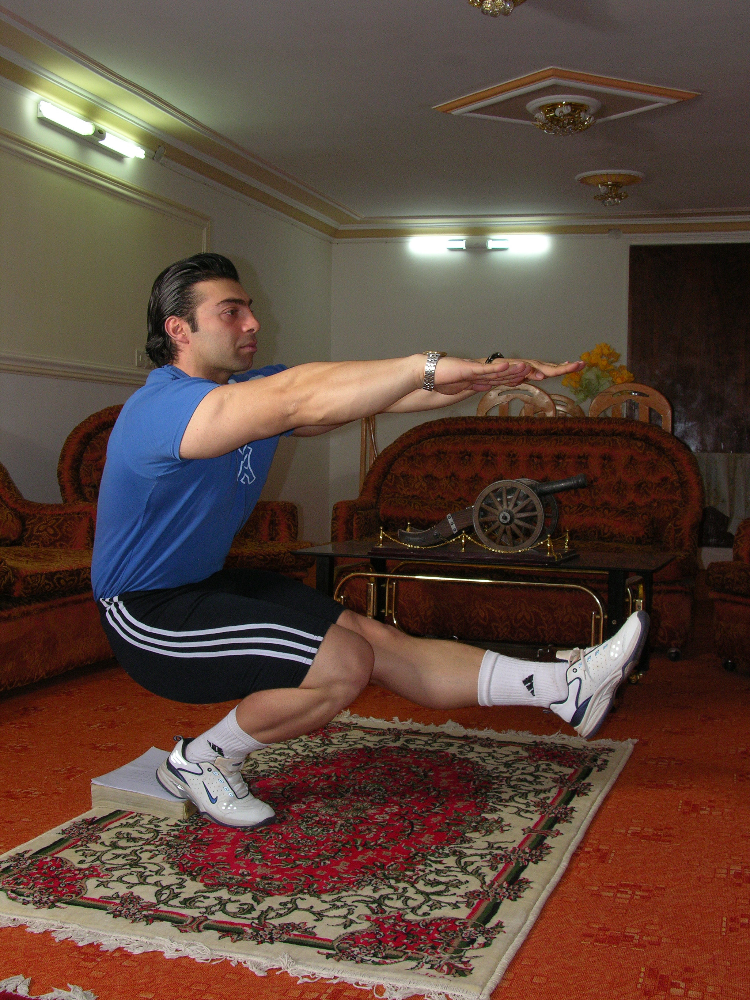 힌두 스쿼트 (Hindu squat) | 발끝으로 서서 팔을 치켜들어 반동을 주는 스쿼트. 바이탁(baithak)이라고도 하며, 고대 인도 레슬러들의 주요 운동이었다. 브루스 리도 훈련에 사용했다.[28] |
