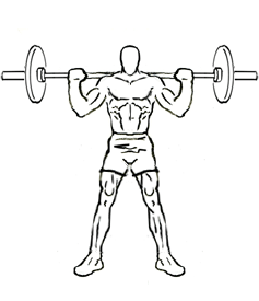 - '''오버헤드 스쿼트''' : 바벨을 넓게 벌린 팔 스내치 그립으로 머리 위에 잡는다. 균형이 허락한다면 더 좁은 그립도 가능하다.
