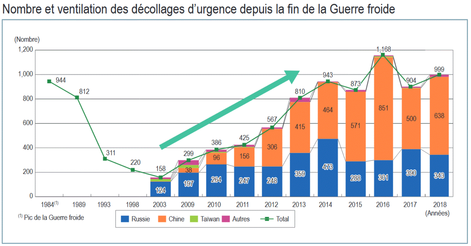 연도 | 긴급 발진 건수 총계 | 중화인민공화국 | 러시아 | 조선민주주의인민공화국 | 중화민국 (대만) | 기타 |