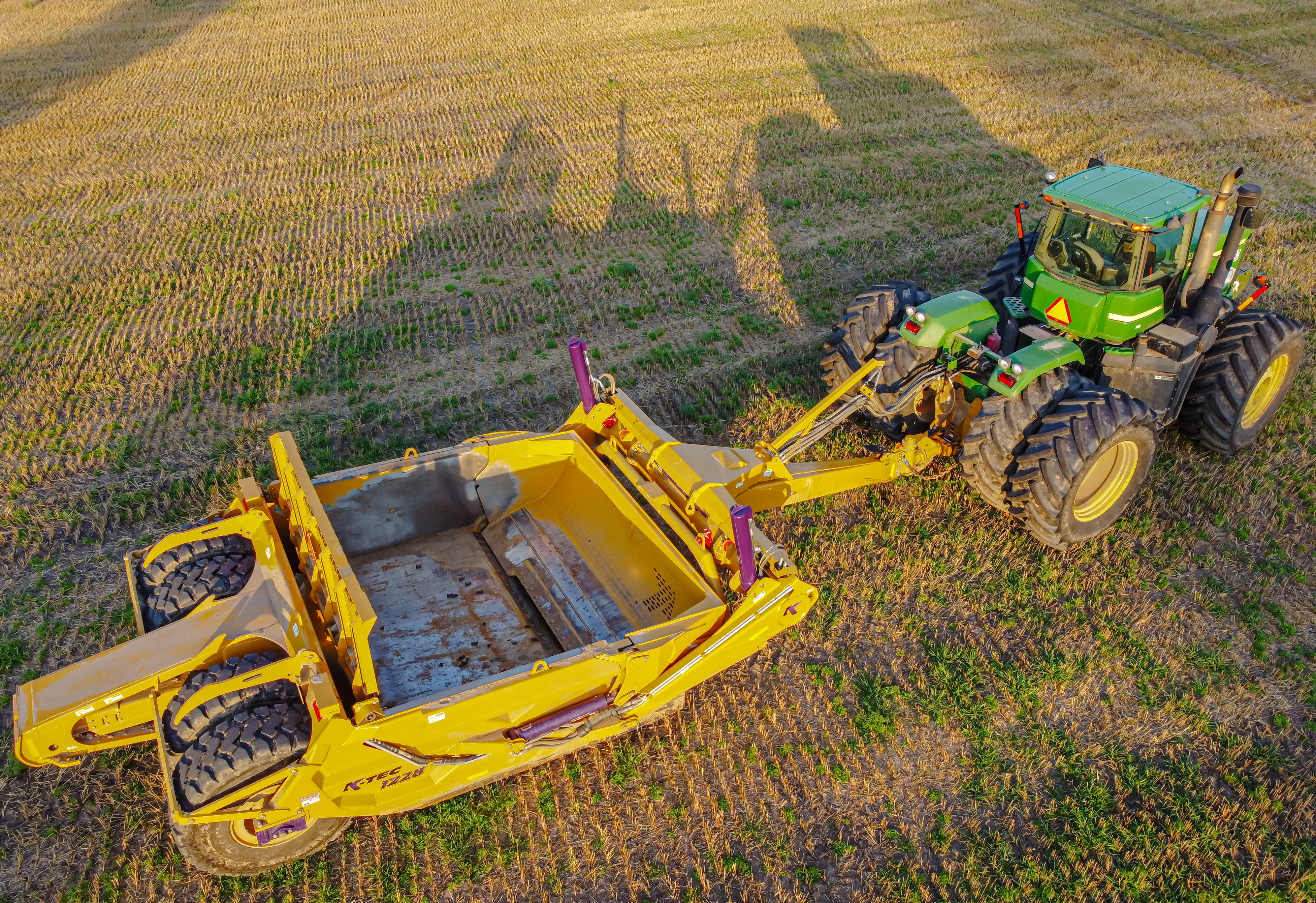 엘리베이팅 스크레이퍼는 호퍼 내부에 컨베이어 벨트와 유사한 엘리베이터를 장착하여 흙을 효율적으로 적재하며, 푸시 트랙터의 도움 없이 자가 적재가 가능하다.