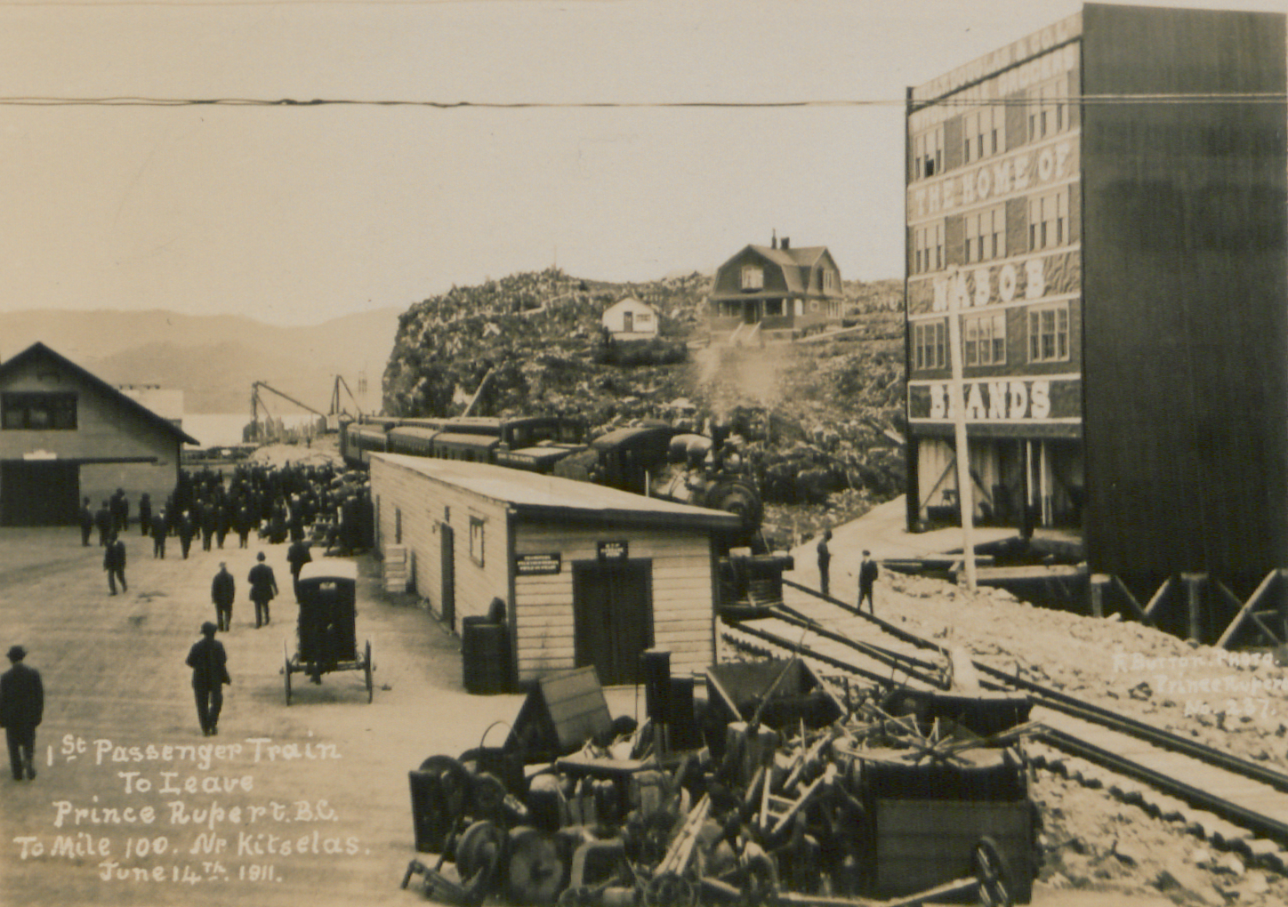 1911년, 역 이름을 선정하고[6] 승객 서비스는 프린스 루퍼트에서 키칠라스(과거 바나르돌)까지 동쪽으로 처음 160km 구간에서 이용 가능했다.[7] 1912년 3월 스키나 크로싱에 철로가 도착한 후, 그랜드 트렁크 퍼시픽 철도(GTPR)는 프린스 루퍼트에서 헤이즐턴까지 페리를 이용해 스키나 강을 건너는 승객 서비스를 제공했다.[8] 1913년까지 로즈 레이크는 임시 종착역 위치였다. 1913년 10월, 첫 번째 여객 열차가 스미더스에 도착했다.[9][10]